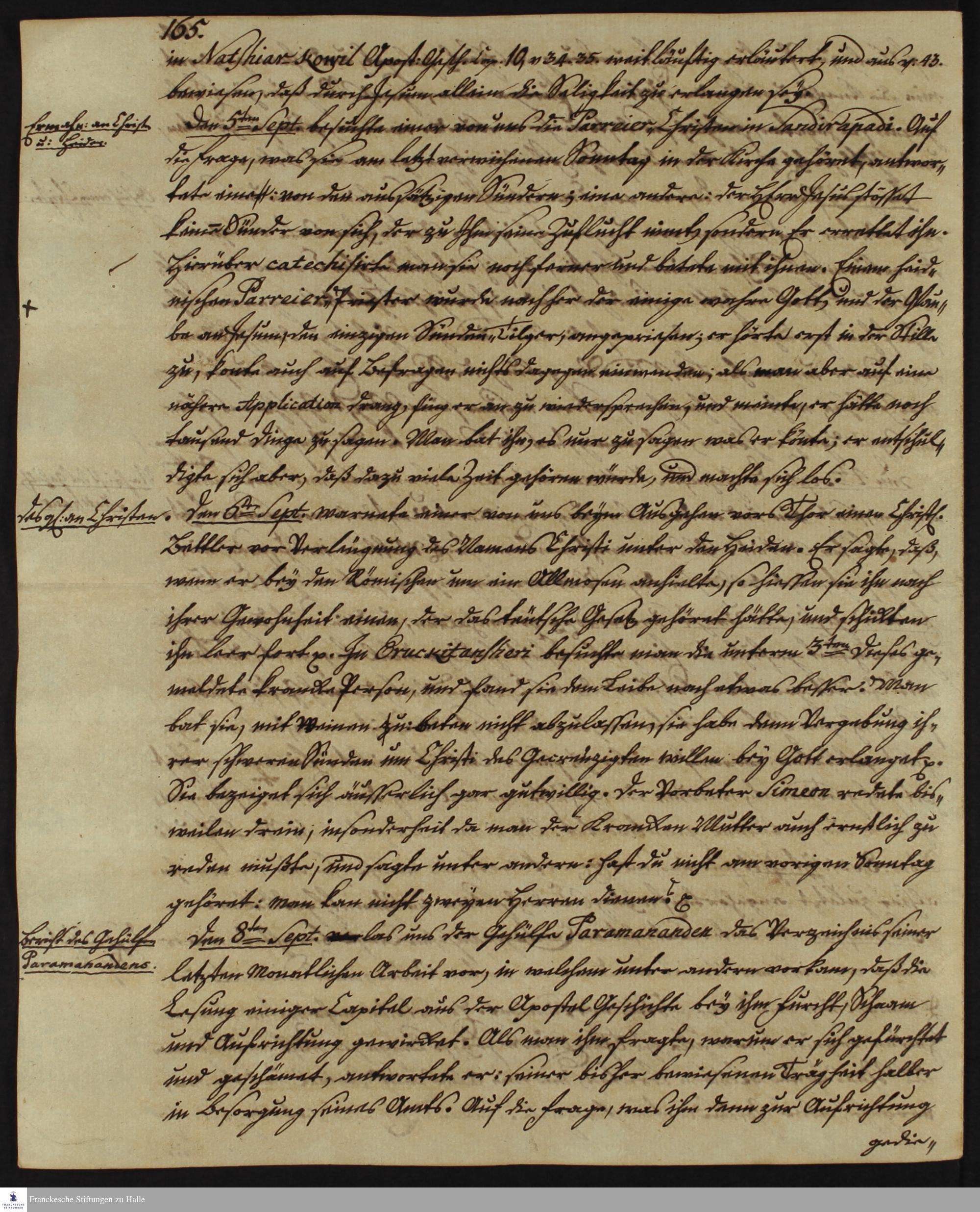 Tagebuch von Johann Christian Wiedebrock, Johann Balthasar Kohlhoff, Daniel Zeglin, Oluf Maderup, Jacob Klein, Christian Friedrich Schwartz und David Poltzenhagen.