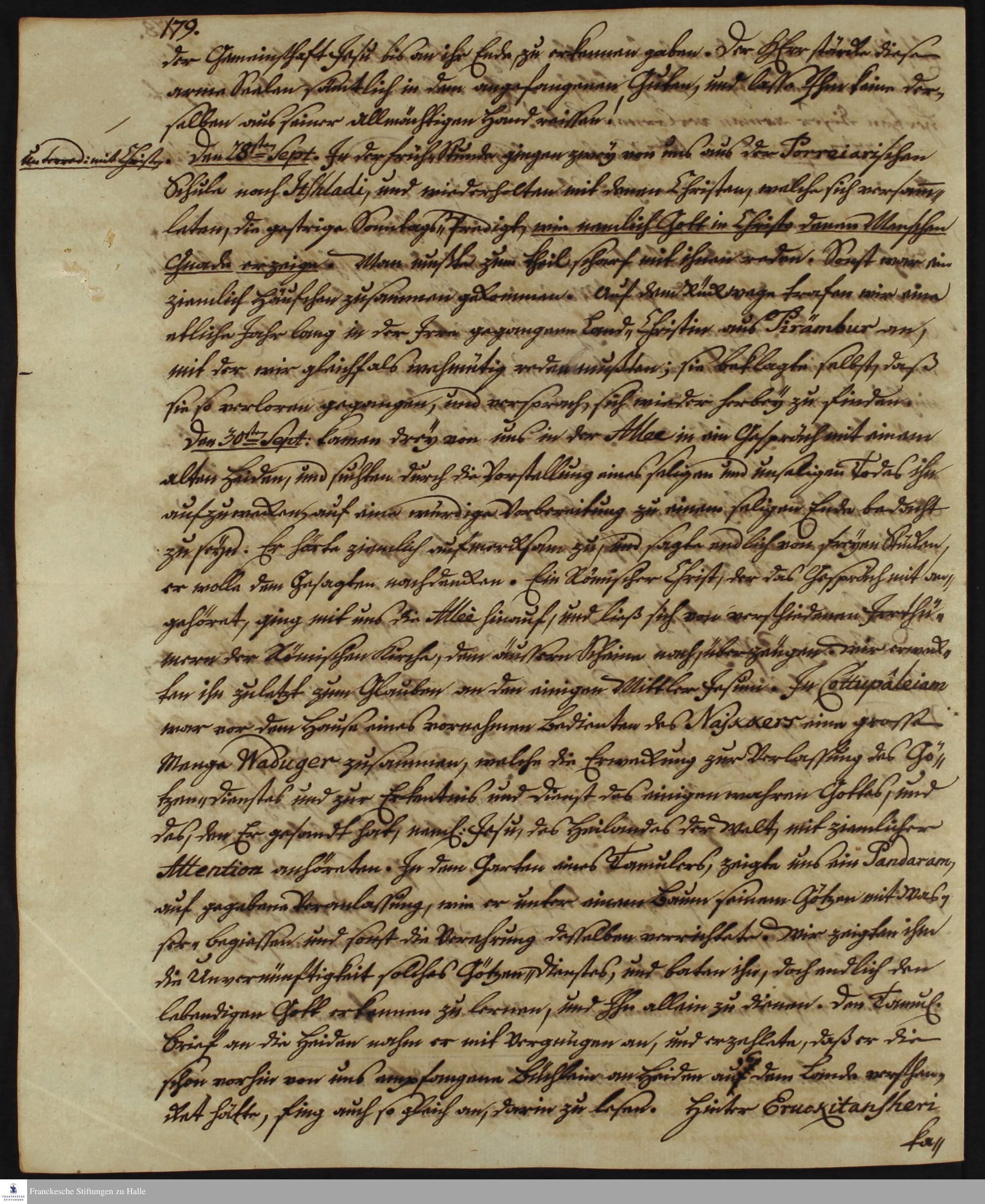 Tagebuch von Johann Christian Wiedebrock, Johann Balthasar Kohlhoff, Daniel Zeglin, Oluf Maderup, Jacob Klein, Christian Friedrich Schwartz und David Poltzenhagen.