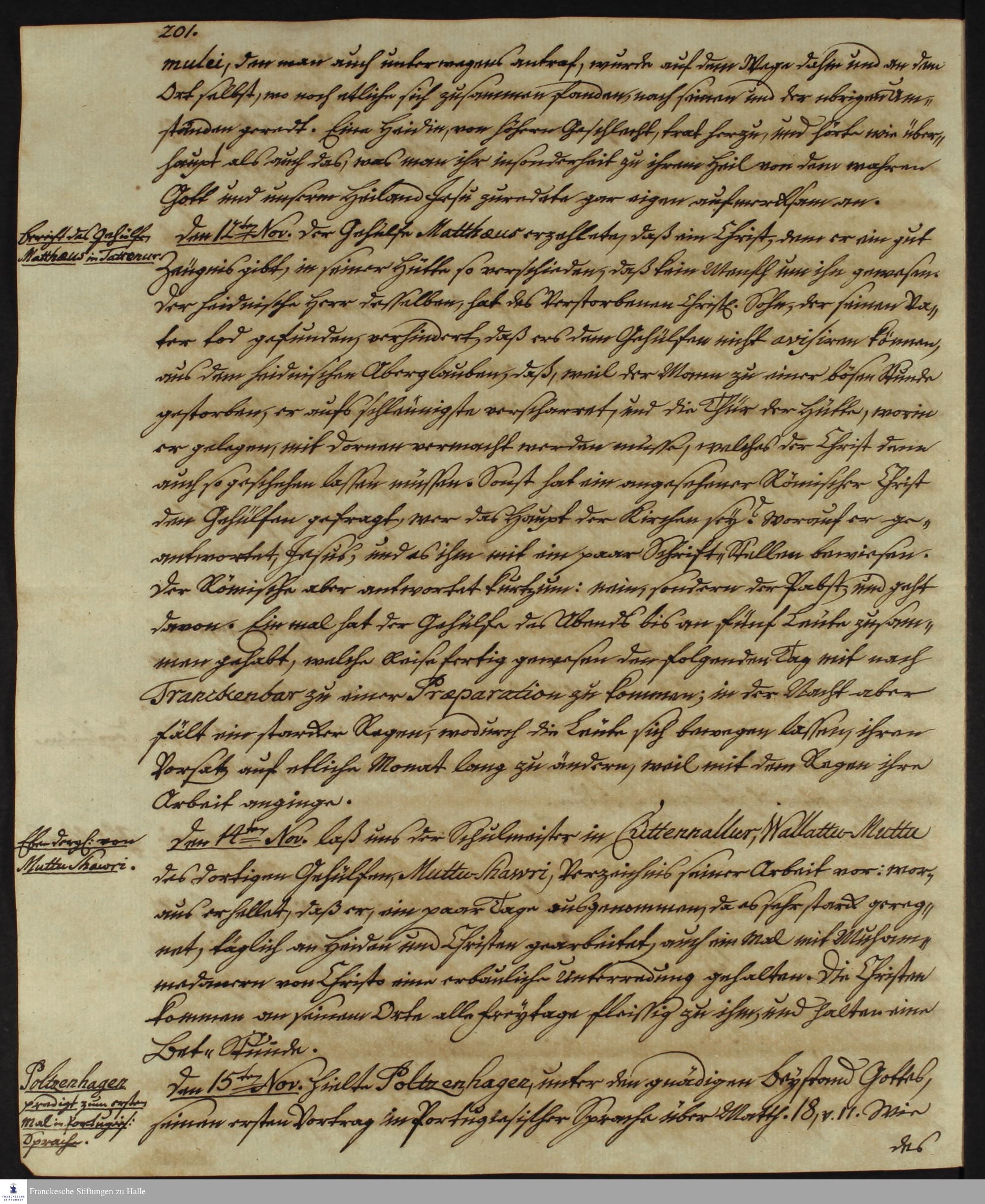 Tagebuch von Johann Christian Wiedebrock, Johann Balthasar Kohlhoff, Daniel Zeglin, Oluf Maderup, Jacob Klein, Christian Friedrich Schwartz und David Poltzenhagen.