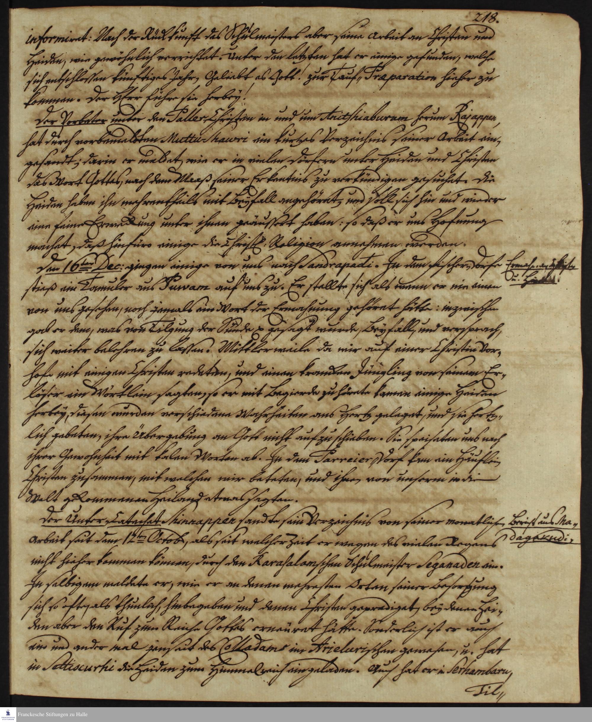 Tagebuch von Johann Christian Wiedebrock, Johann Balthasar Kohlhoff, Daniel Zeglin, Oluf Maderup, Jacob Klein, Christian Friedrich Schwartz und David Poltzenhagen.