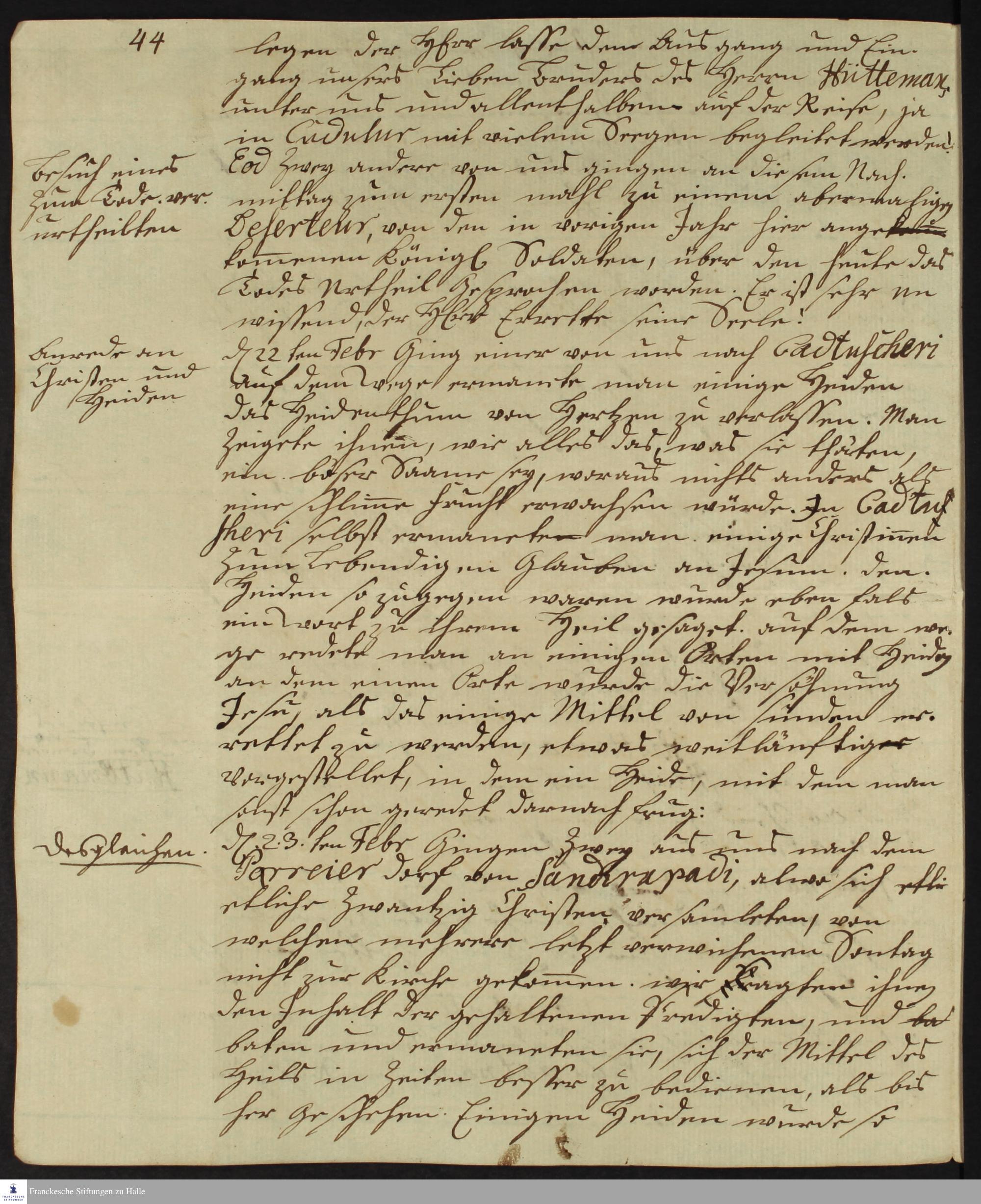 Tagebuch von Johann Christian Wiedebrock, Johann Balthasar Kohlhoff, Daniel Zeglin, Oluf Maderup, Jacob Klein, Christian Friedrich Schwartz und David Poltzenhagen.