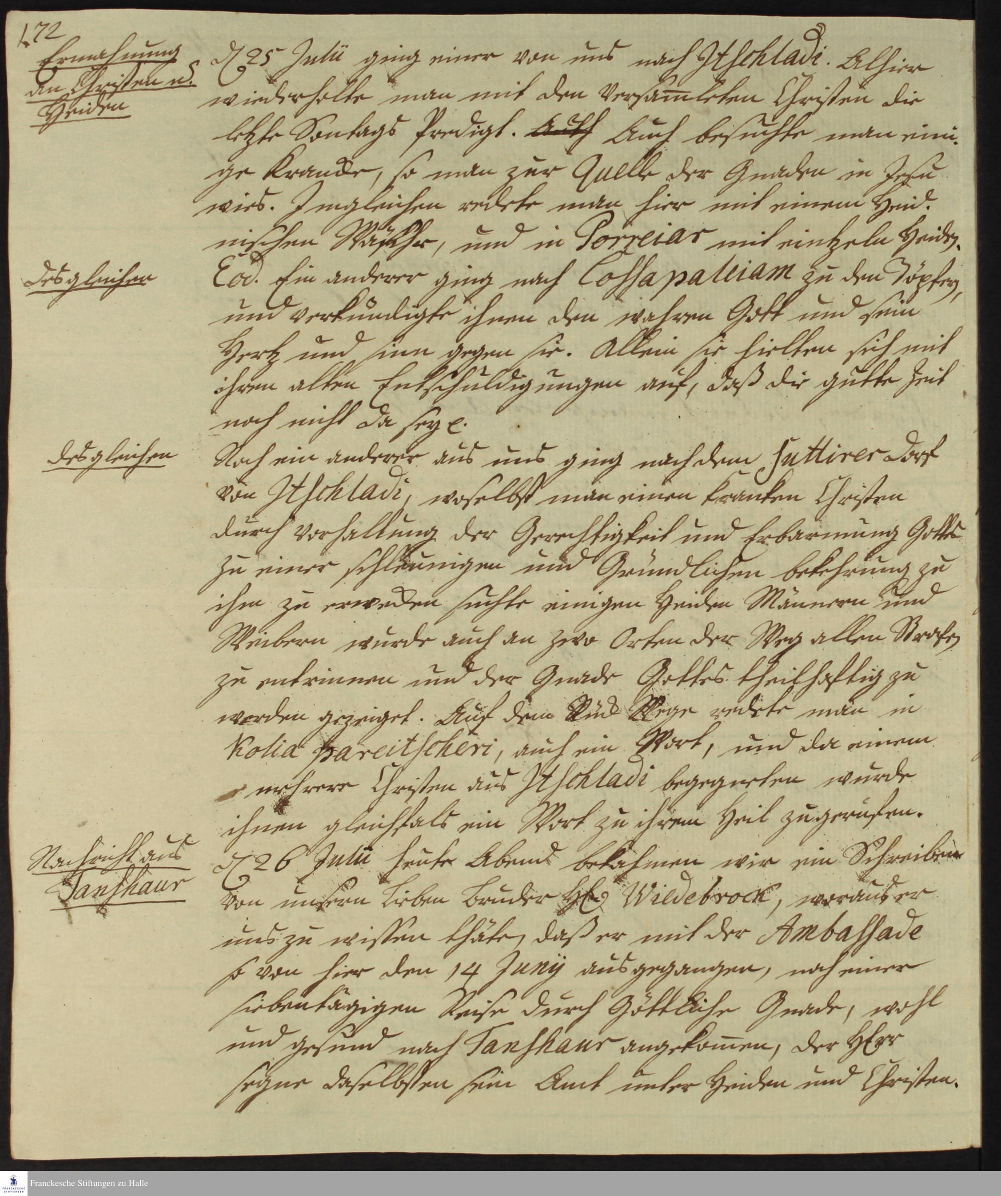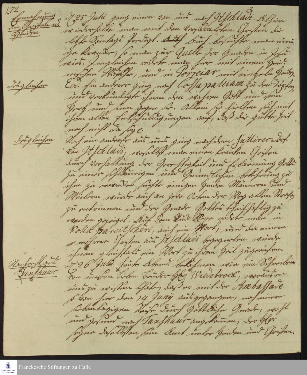 Tagebuch von Johann Christian Wiedebrock, Johann Balthasar Kohlhoff, Daniel Zeglin, Oluf Maderup, Jacob Klein, Christian Friedrich Schwartz und David Poltzenhagen.