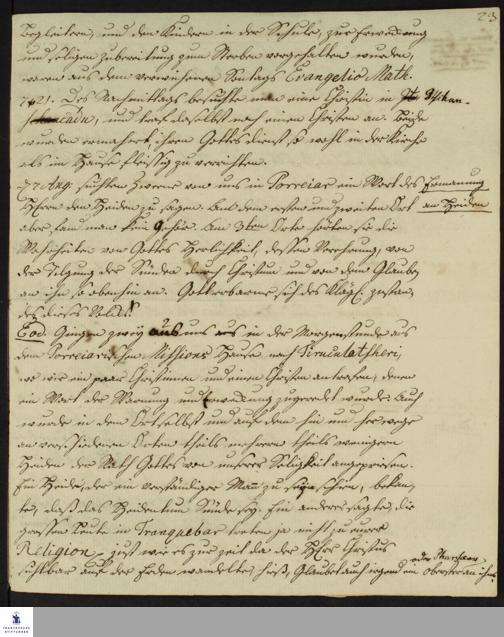 Tagebuch von Johann Christian Wiedebrock, Johann Balthasar Kohlhoff, Daniel Zeglin, Oluf Maderup, Jacob Klein, Christian Friedrich Schwartz und David Poltzenhagen.