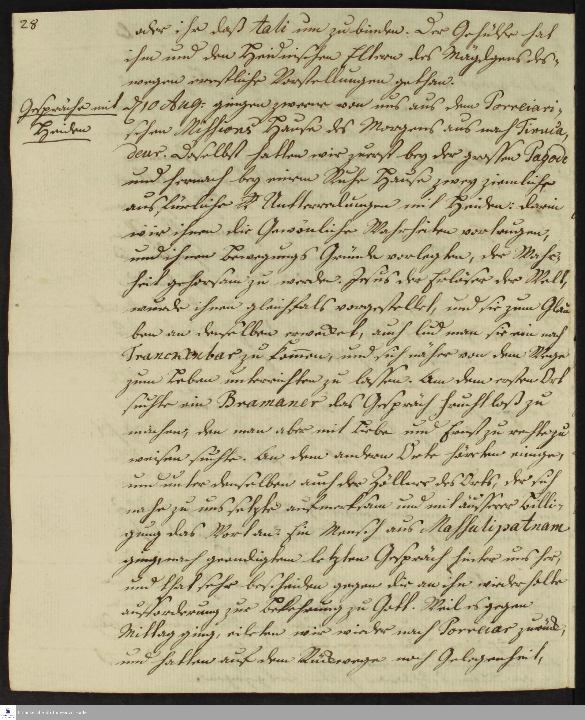 Tagebuch von Johann Christian Wiedebrock, Johann Balthasar Kohlhoff, Daniel Zeglin, Oluf Maderup, Jacob Klein, Christian Friedrich Schwartz und David Poltzenhagen.