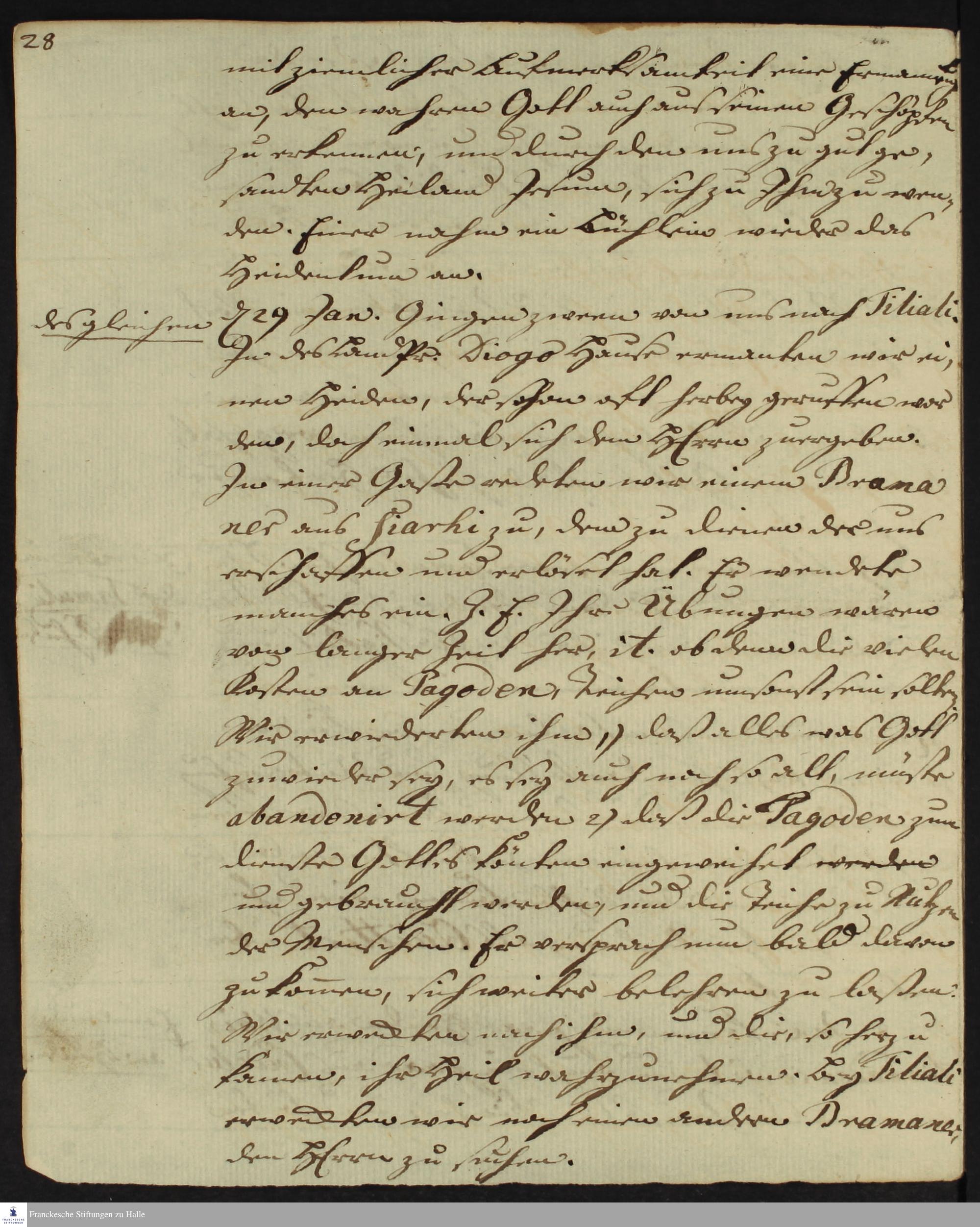Tagebuch von Johann Christian Wiedebrock, Johann Balthasar Kohlhoff, Daniel Zeglin, Oluf Maderup, Jacob Klein, Christian Friedrich Schwartz und David Poltzenhagen.