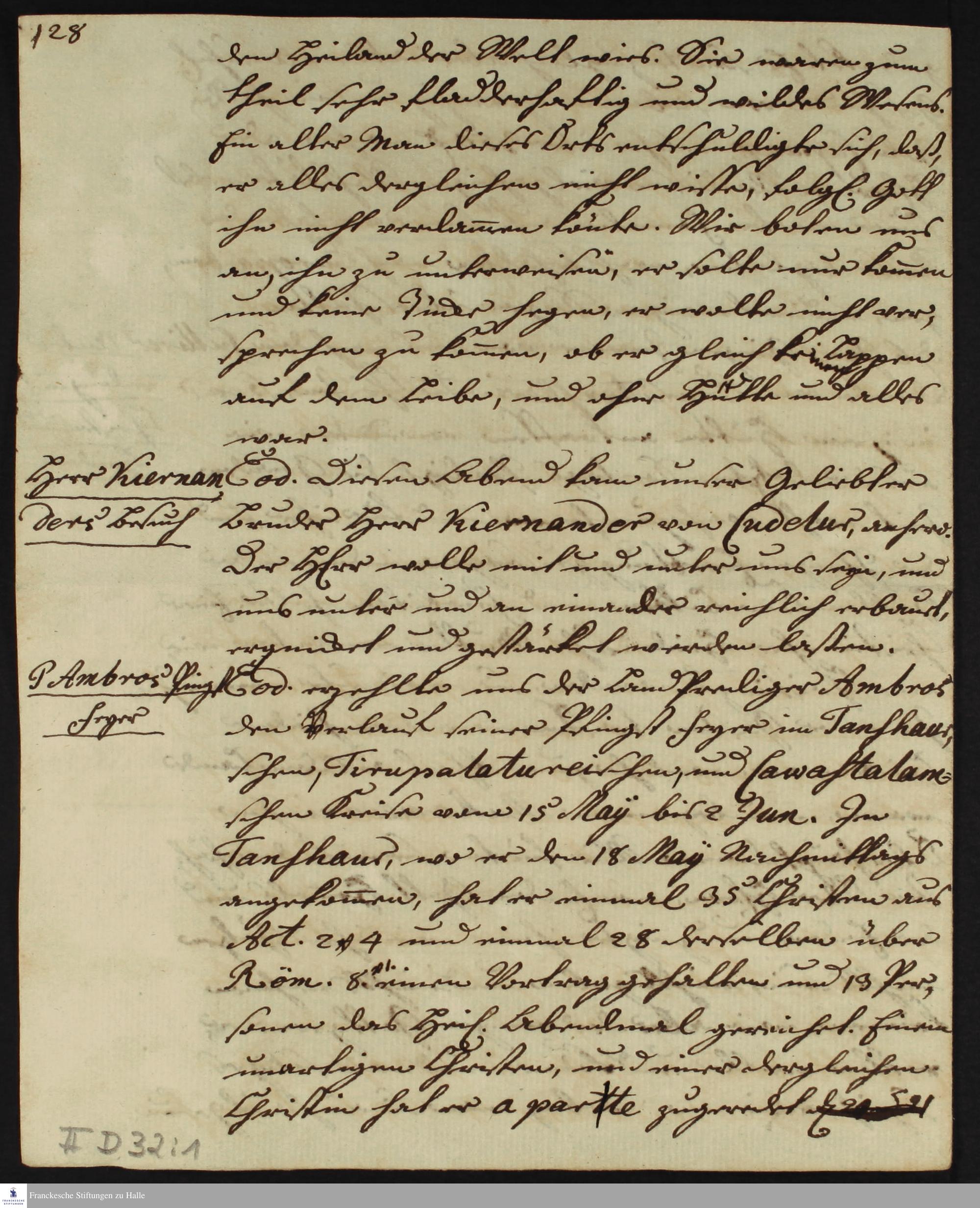 Tagebuch von Johann Christian Wiedebrock, Johann Balthasar Kohlhoff, Daniel Zeglin, Oluf Maderup, Jacob Klein, Christian Friedrich Schwartz und David Poltzenhagen.