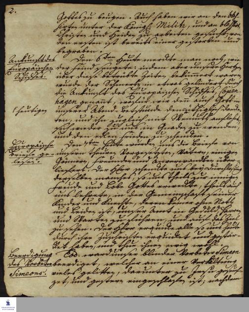 Tagebuch von Johann Christian Wiedebrock, Johann Balthasar Kohlhoff, Daniel Zeglin; Oluf Maderup, Jacob Klein, Christian Friedrich Schwartz und Peter Dame.
