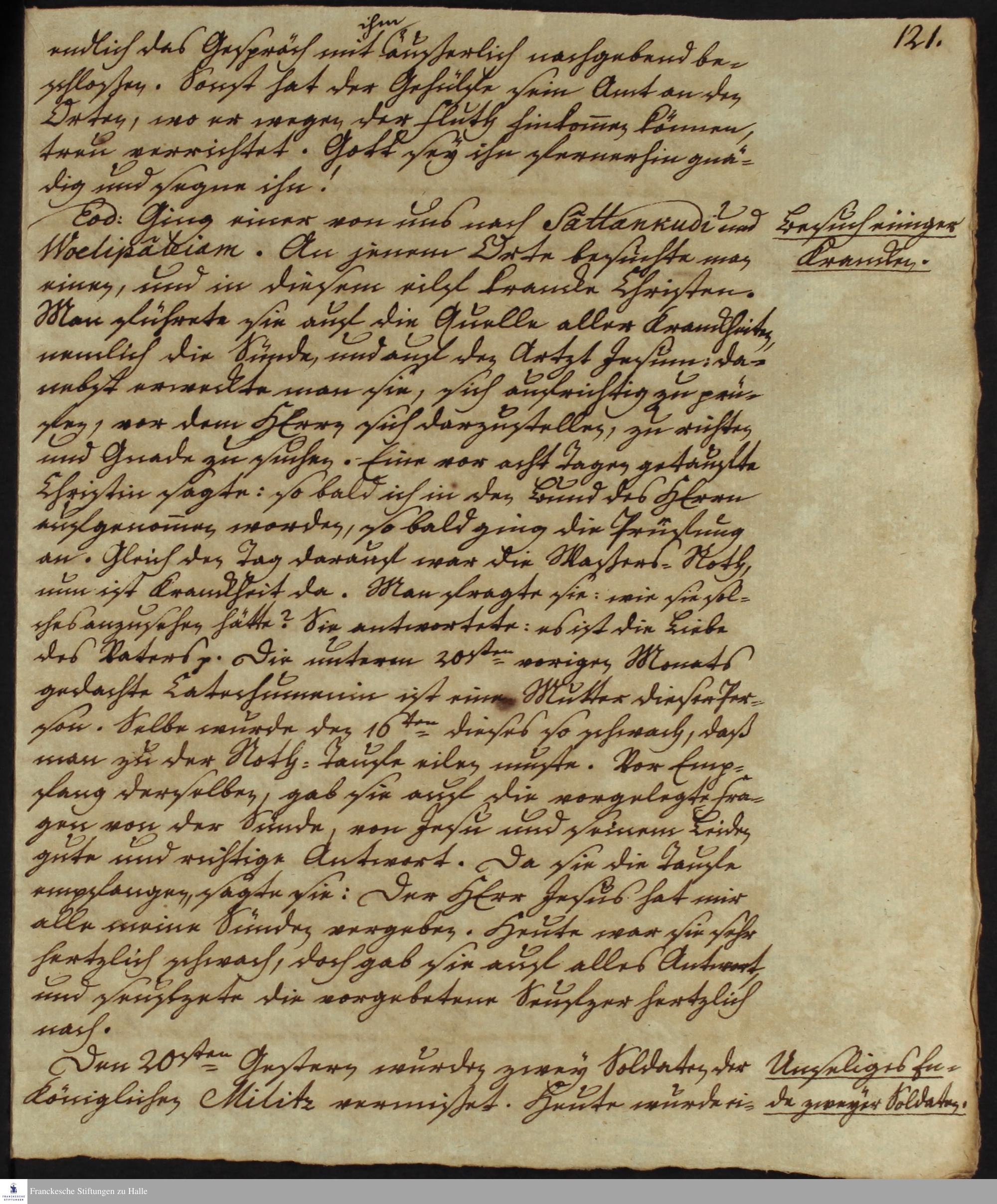 Tagebuch von Johann Christian Wiedebrock, Johann Balthasar Kohlhoff, Daniel Zeglin; Oluf Maderup, Jacob Klein, Christian Friedrich Schwartz und Peter Dame.
