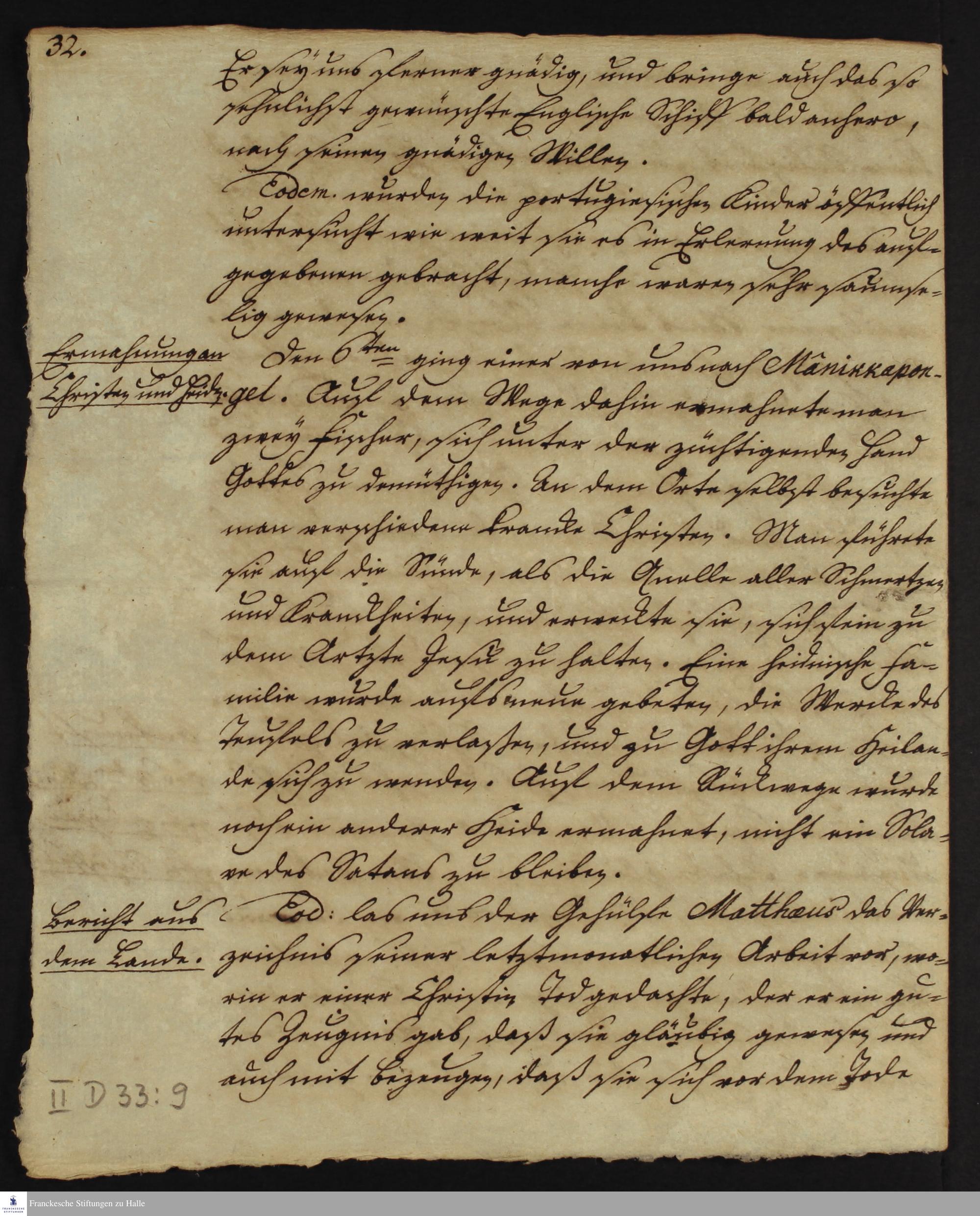 Tagebuch von Johann Christian Wiedebrock, Johann Balthasar Kohlhoff, Daniel Zeglin; Oluf Maderup, Jacob Klein, Christian Friedrich Schwartz und Peter Dame.