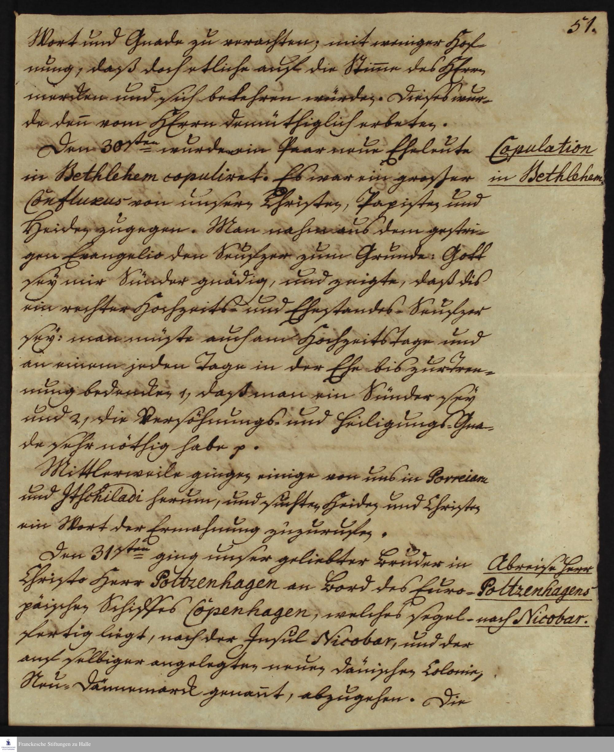 Tagebuch von Johann Christian Wiedebrock, Johann Balthasar Kohlhoff, Daniel Zeglin; Oluf Maderup, Jacob Klein, Christian Friedrich Schwartz und Peter Dame.