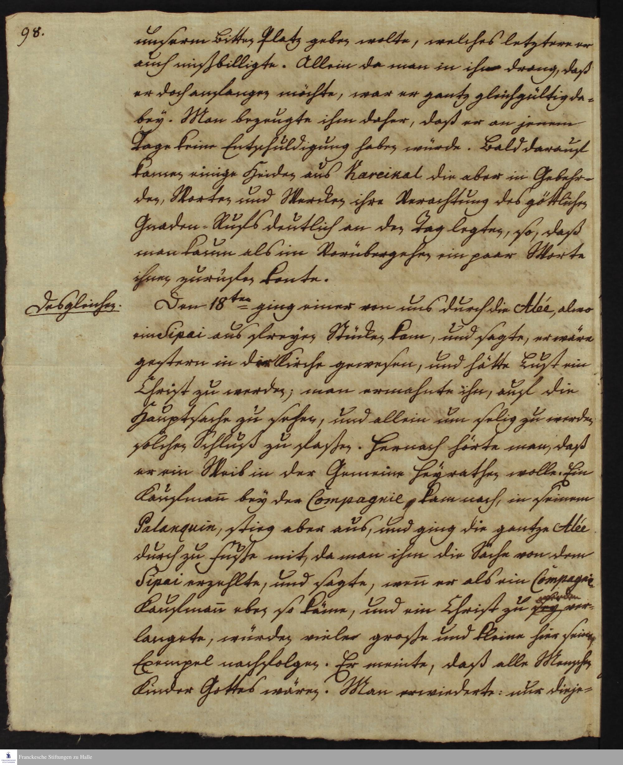 Tagebuch von Johann Christian Wiedebrock, Johann Balthasar Kohlhoff, Daniel Zeglin; Oluf Maderup, Jacob Klein, Christian Friedrich Schwartz und Peter Dame.