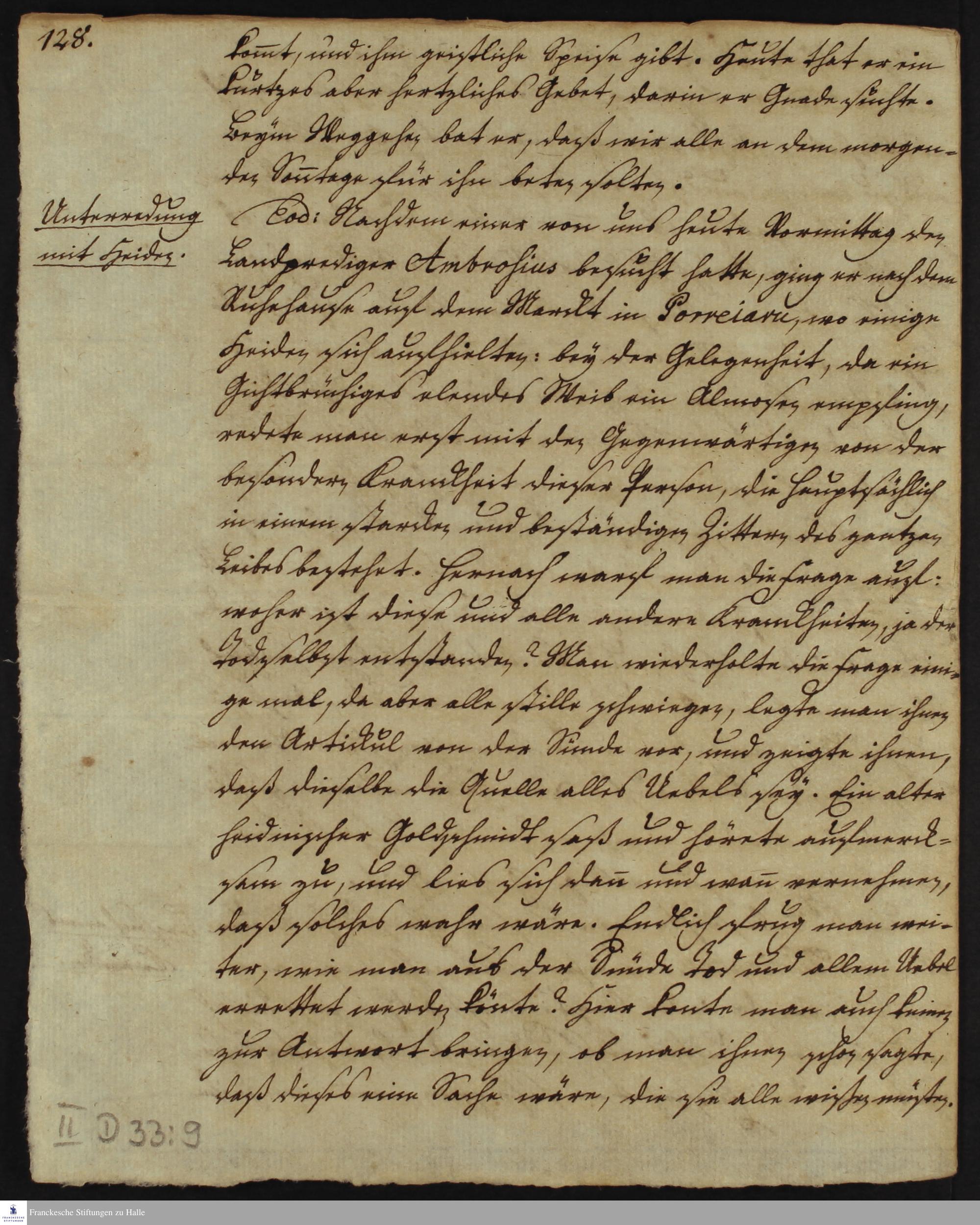 Tagebuch von Johann Christian Wiedebrock, Johann Balthasar Kohlhoff, Daniel Zeglin; Oluf Maderup, Jacob Klein, Christian Friedrich Schwartz und Peter Dame.