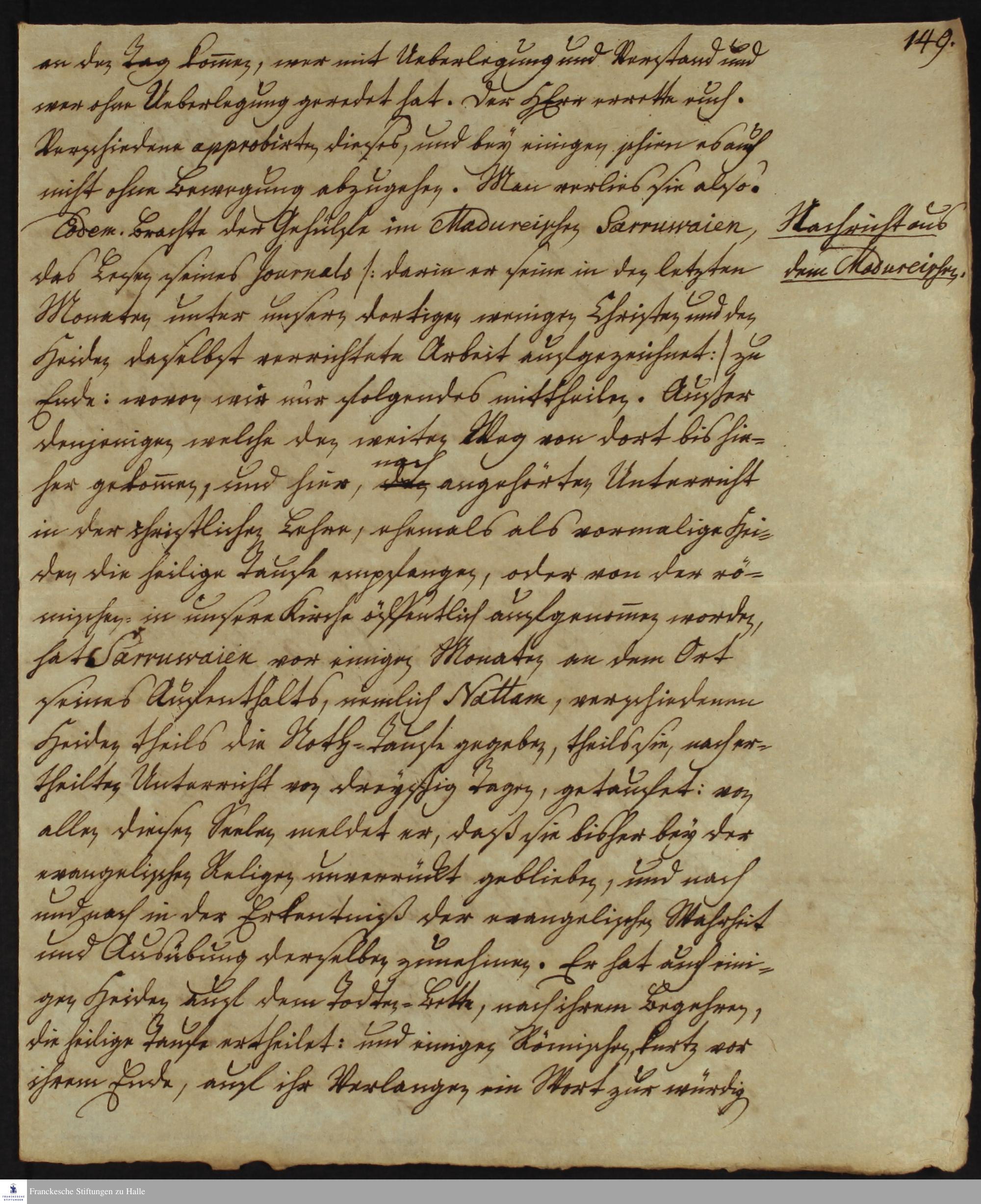 Tagebuch von Johann Christian Wiedebrock, Johann Balthasar Kohlhoff, Daniel Zeglin; Oluf Maderup, Jacob Klein, Christian Friedrich Schwartz und Peter Dame.