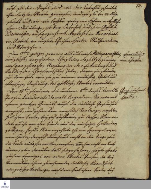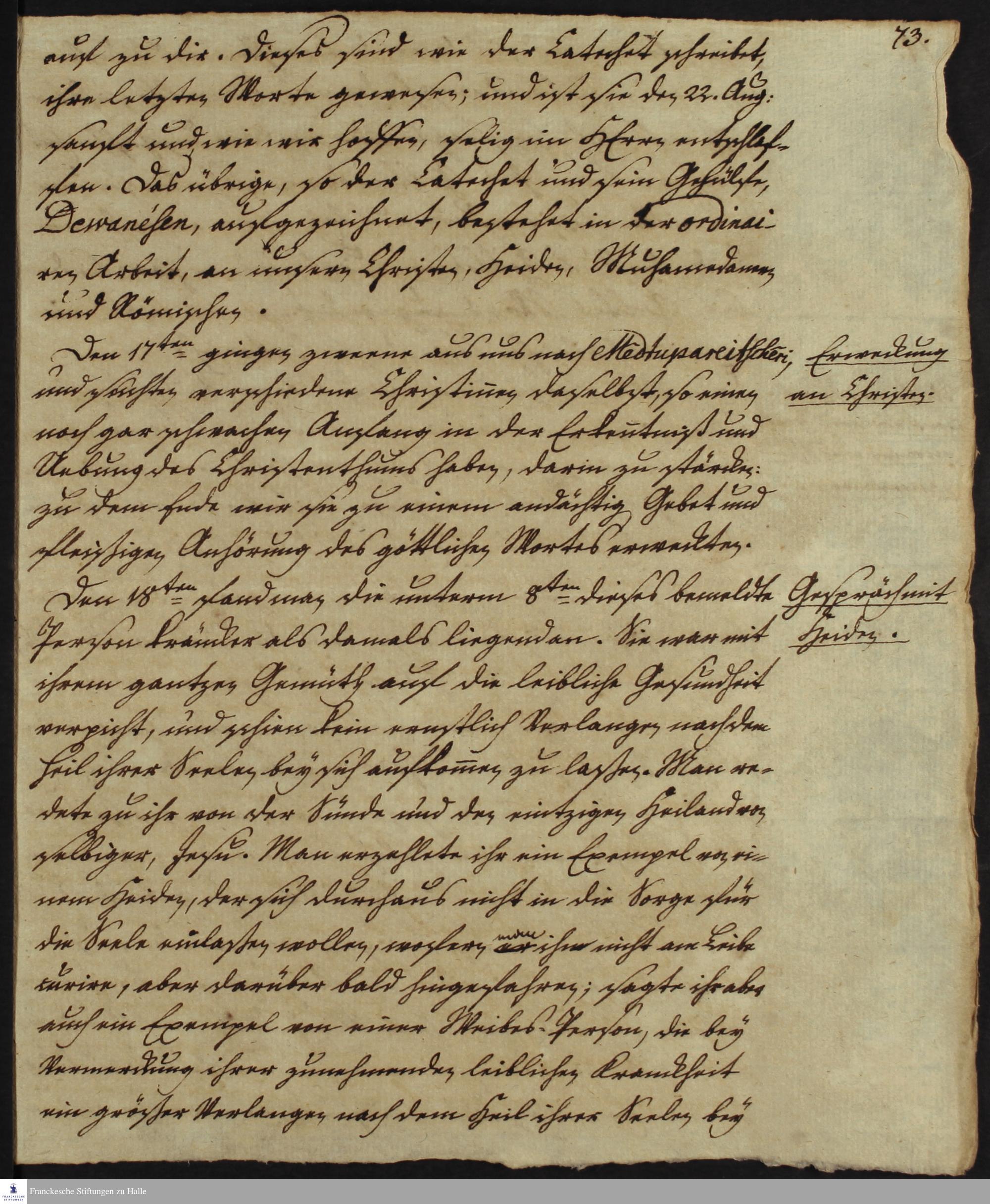 Tagebuch von Johann Christian Wiedebrock, Johann Balthasar Kohlhoff, Daniel Zeglin; Oluf Maderup, Jacob Klein, Christian Friedrich Schwartz und Peter Dame.