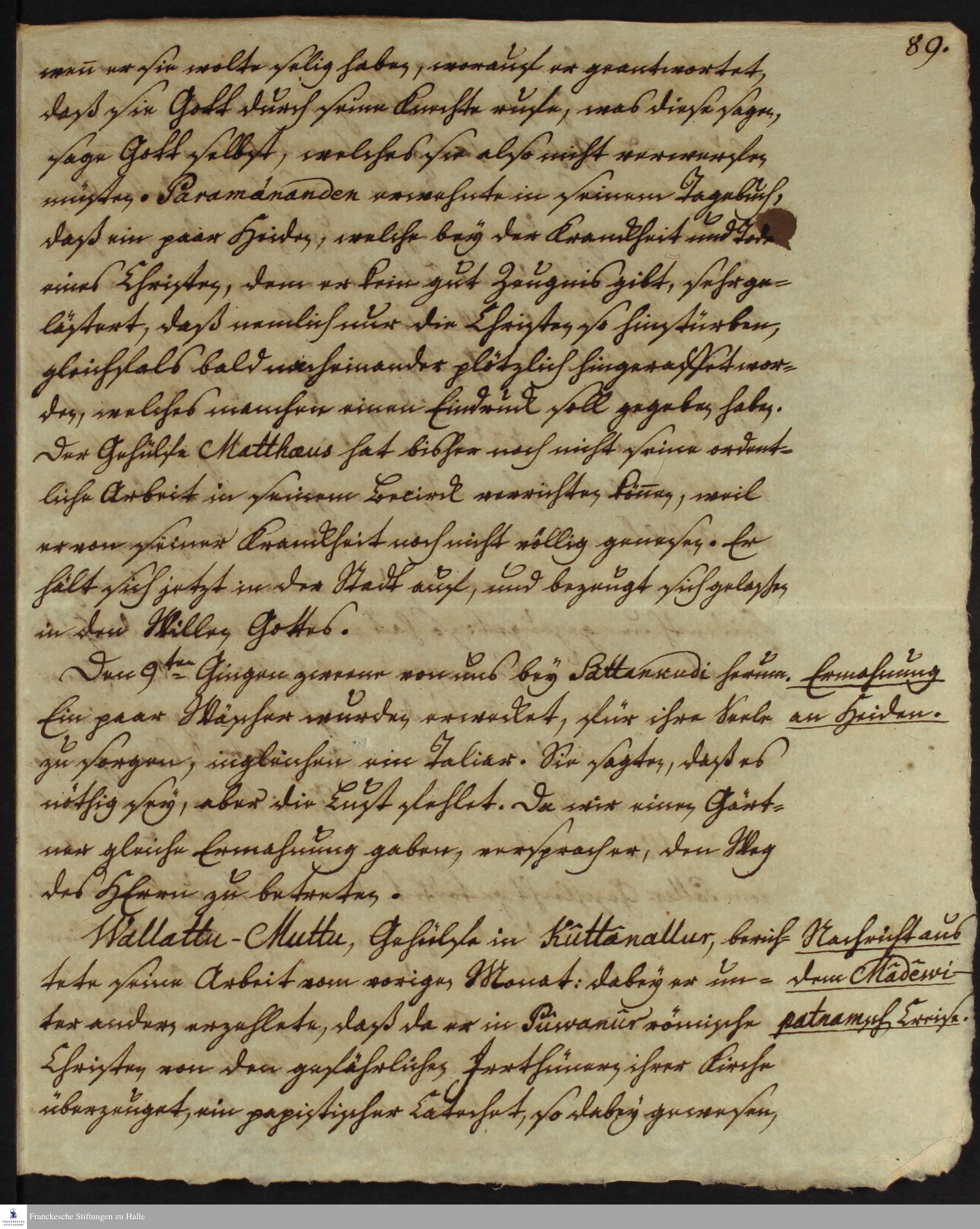 Tagebuch von Johann Christian Wiedebrock, Johann Balthasar Kohlhoff, Daniel Zeglin; Oluf Maderup, Jacob Klein, Christian Friedrich Schwartz und Peter Dame.