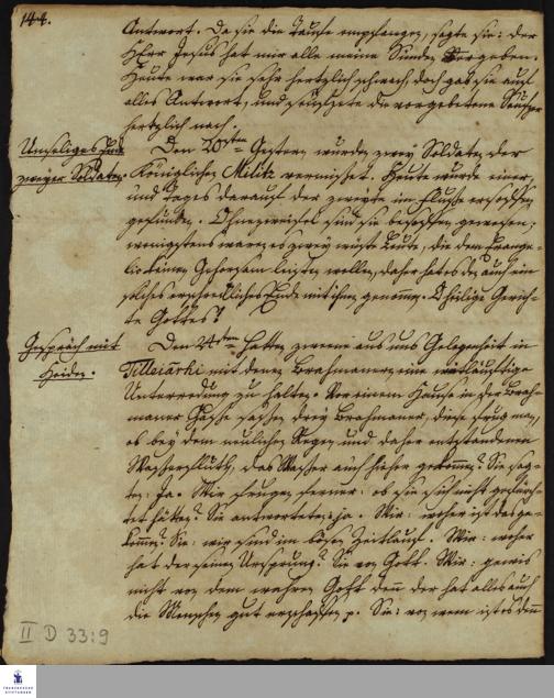 Tagebuch von Johann Christian Wiedebrock, Johann Balthasar Kohlhoff, Daniel Zeglin; Oluf Maderup, Jacob Klein, Christian Friedrich Schwartz und Peter Dame.