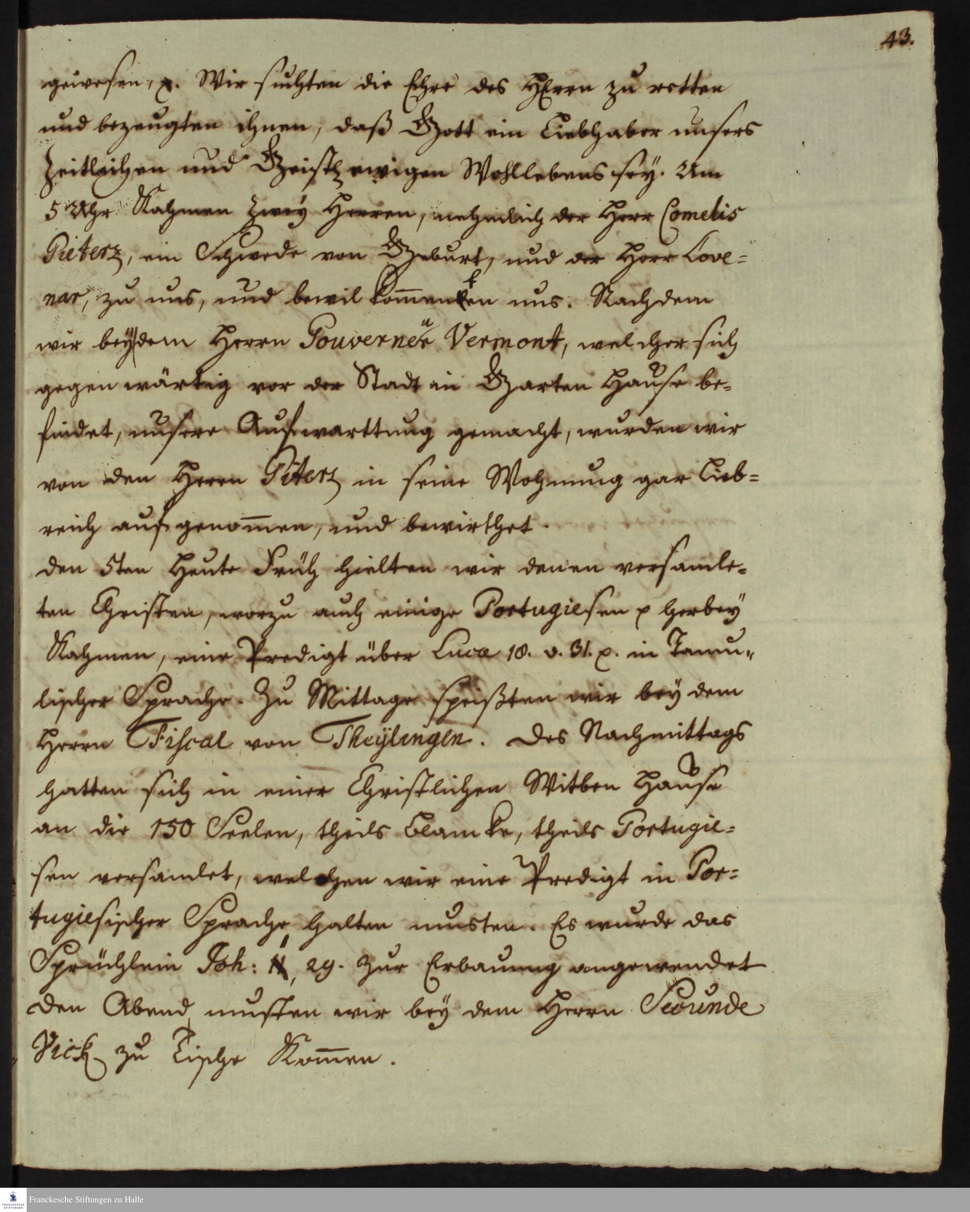 Tagebuch von Johann Christian Wiedebrock, Johann Balthasar Kohlhoff, Daniel Zeglin, Oluf Maderup, Jacob Klein, Christian Friedrich Schwartz und Peter Dame.