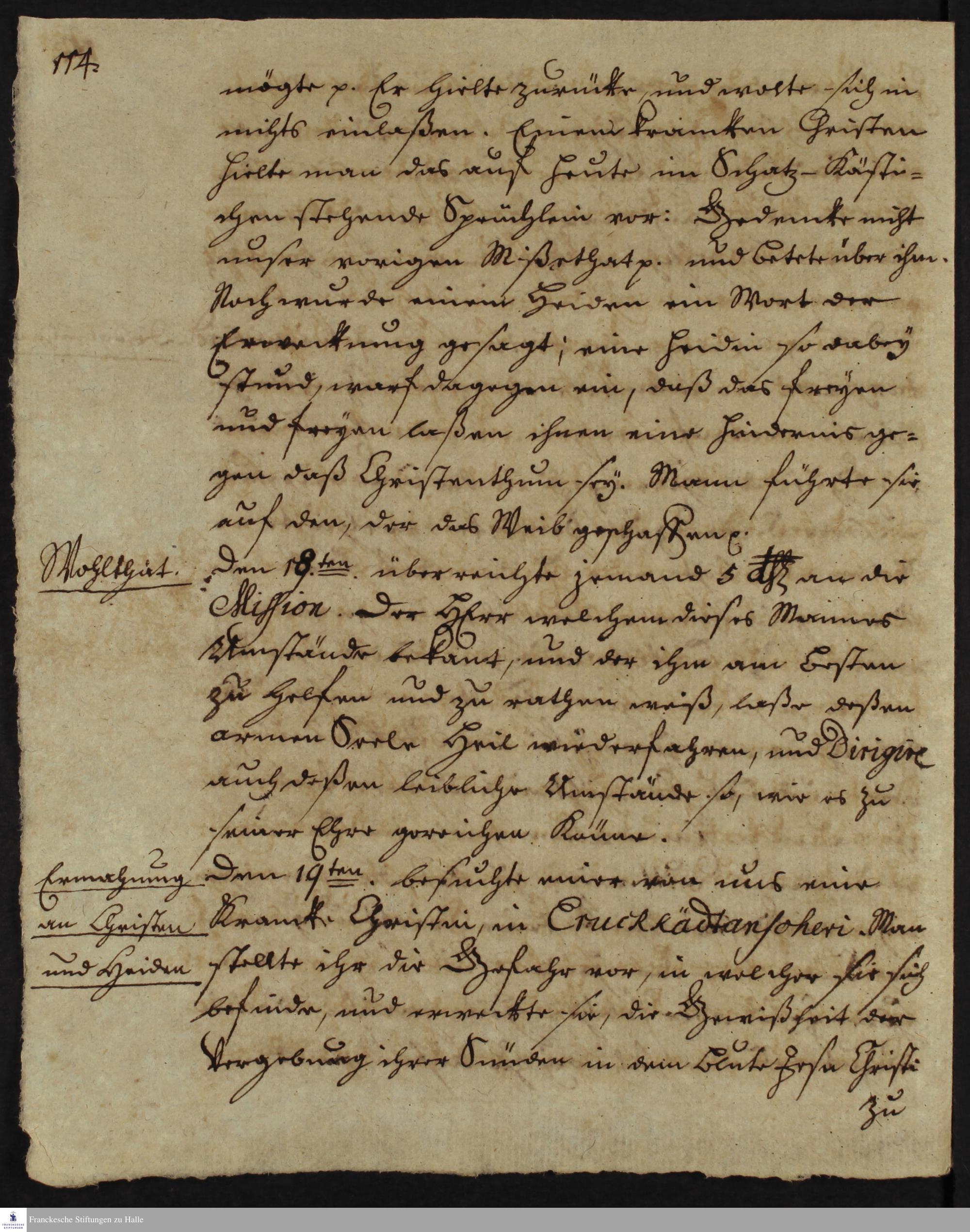 Tagebuch von Johann Christian Wiedebrock, Johann Balthasar Kohlhoff, Daniel Zeglin, Oluf Maderup, Jacob Klein, Christian Friedrich Schwartz und Peter Dame.