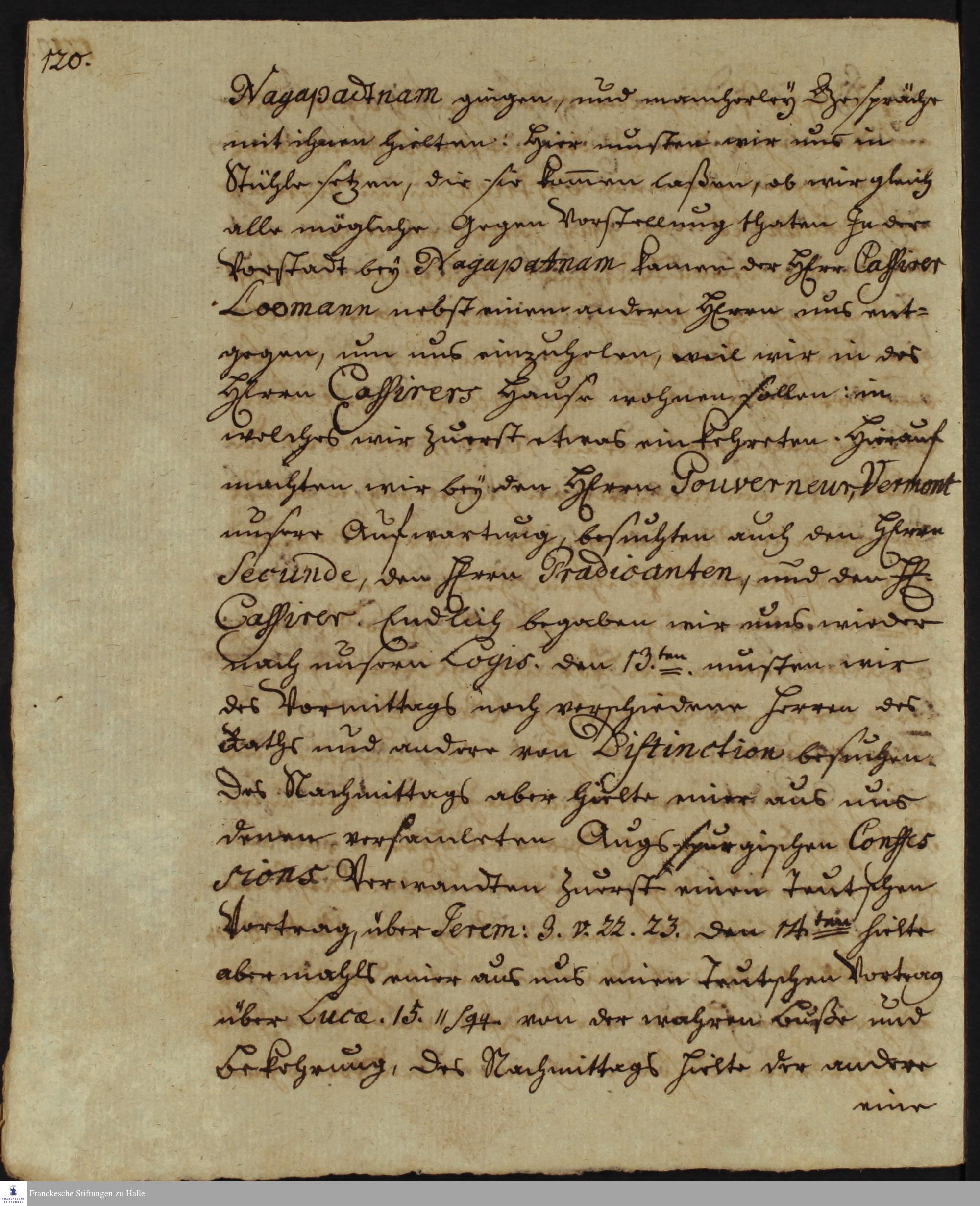 Tagebuch von Johann Christian Wiedebrock, Johann Balthasar Kohlhoff, Daniel Zeglin, Oluf Maderup, Jacob Klein, Christian Friedrich Schwartz und Peter Dame.