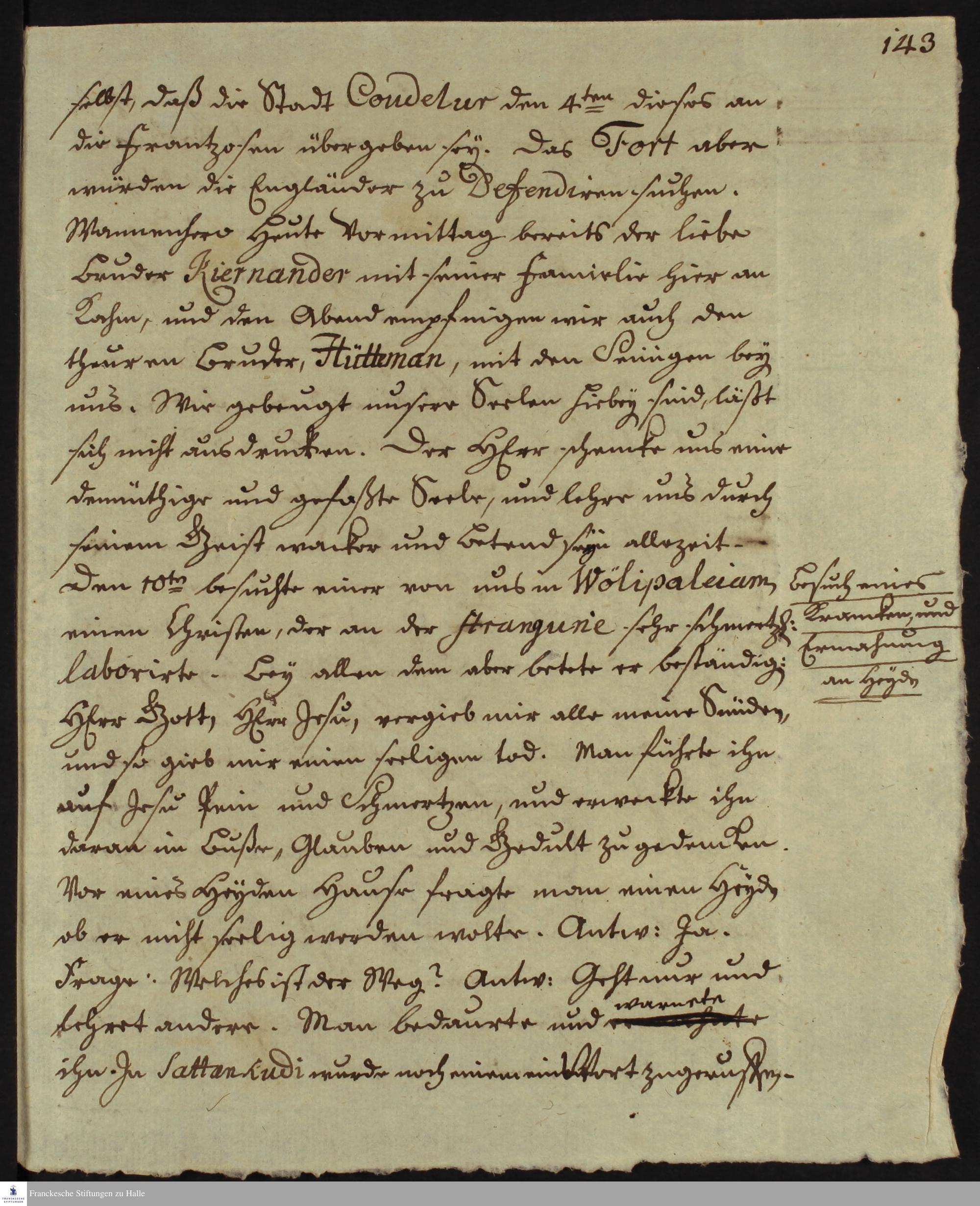 Tagebuch von Johann Christian Wiedebrock, Johann Balthasar Kohlhoff, Daniel Zeglin, Oluf Maderup, Jacob Klein, Christian Friedrich Schwartz und Peter Dame.