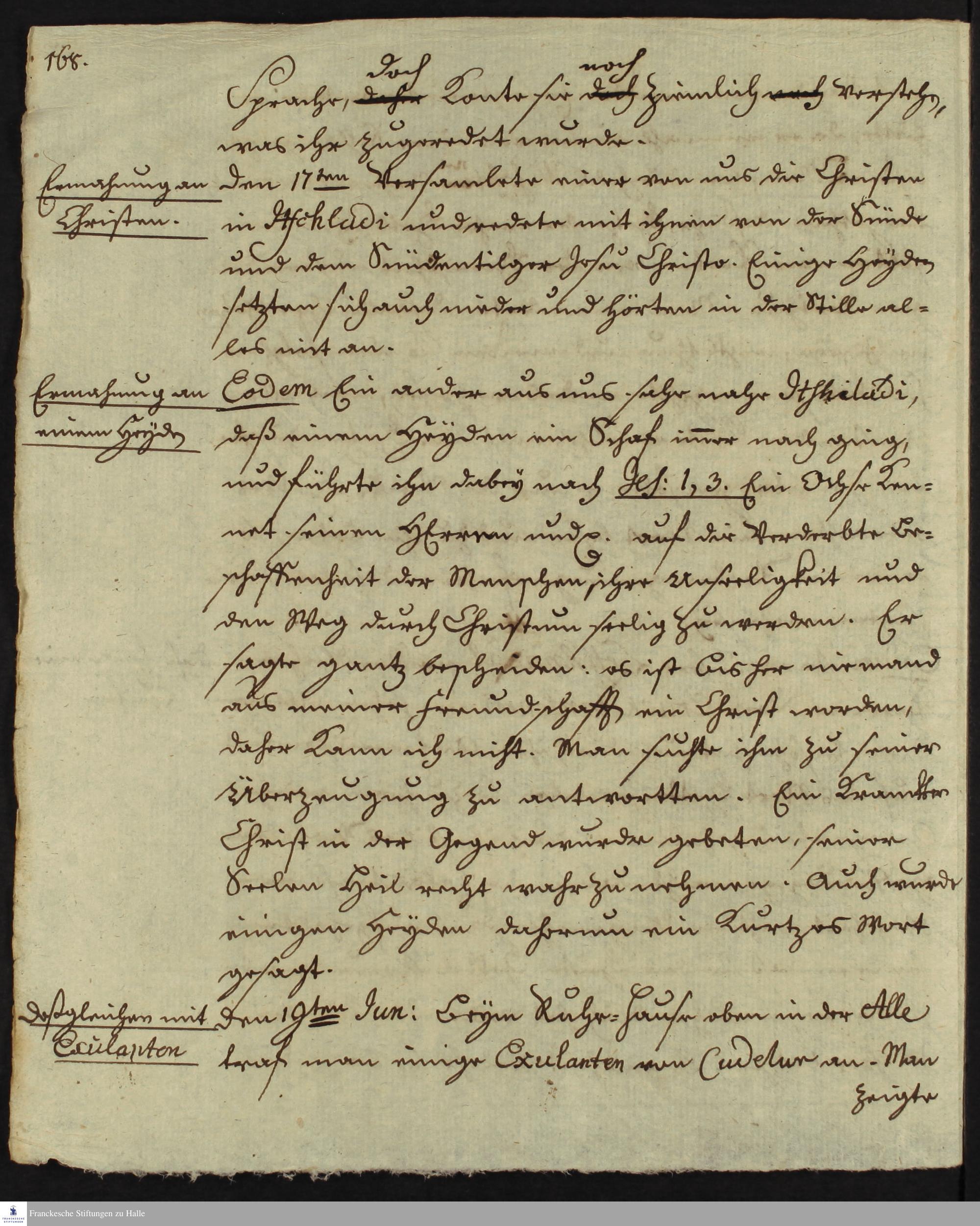 Tagebuch von Johann Christian Wiedebrock, Johann Balthasar Kohlhoff, Daniel Zeglin, Oluf Maderup, Jacob Klein, Christian Friedrich Schwartz und Peter Dame.