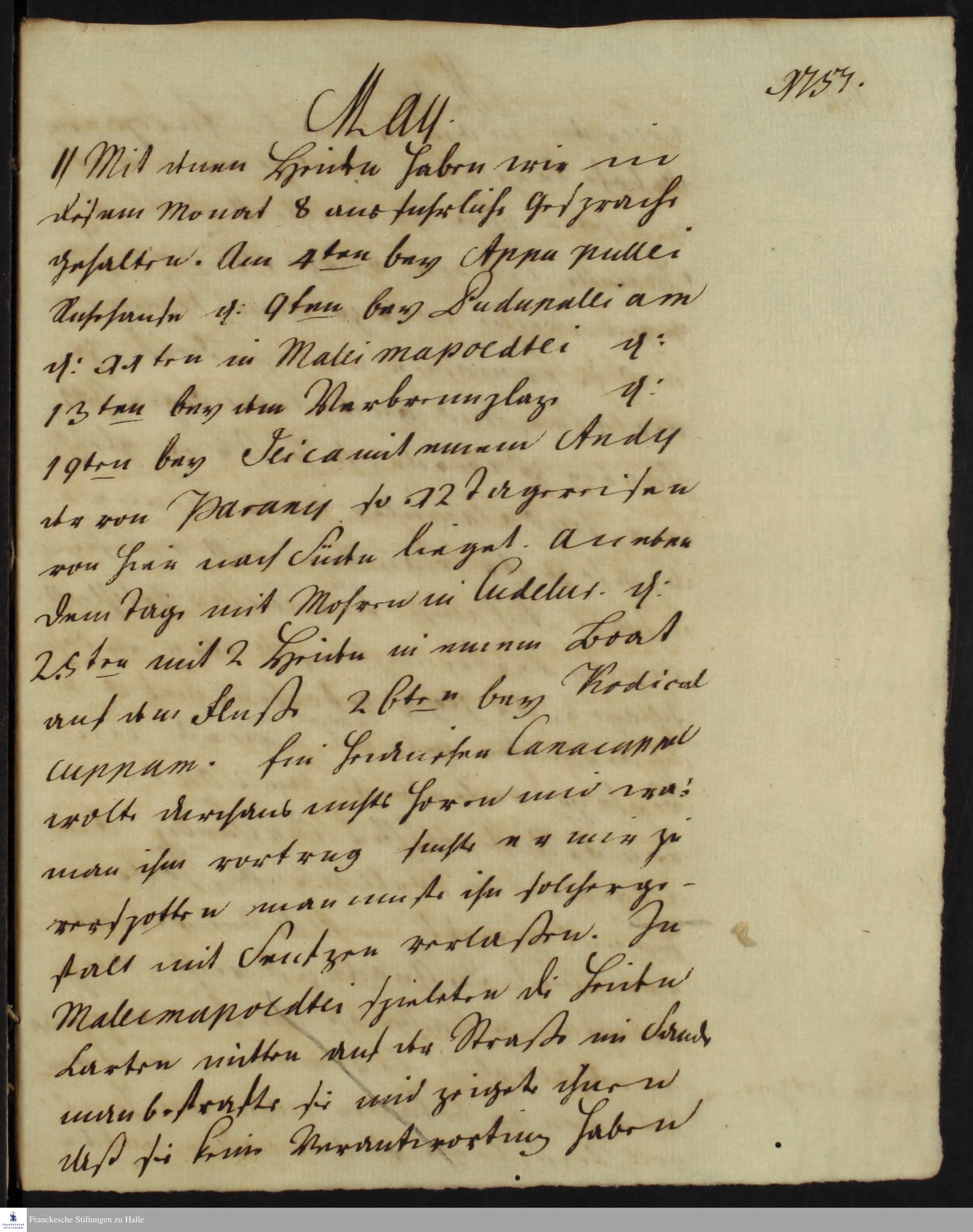 Tagebuch von Johann Zacharias Kiernander und Georg Heinrich Conrad Hüttemann.