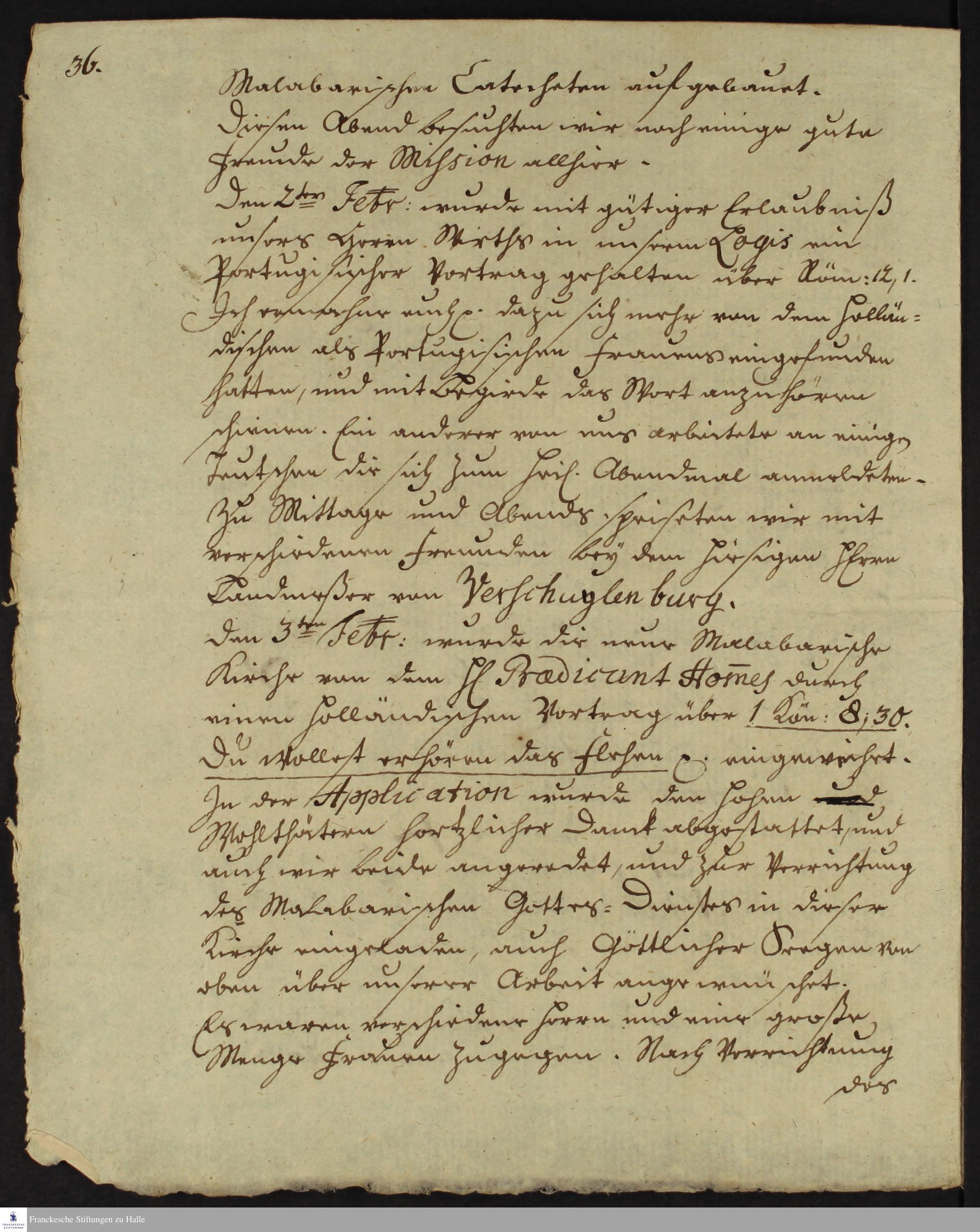 Tagebuch von Johann Christian Wiedebrock, Johann Balthasar Kohlhoff, Daniel Zeglin, Oluf Maderup, Jacob Klein, Christian Friedrich Schwartz und Peter Dame.