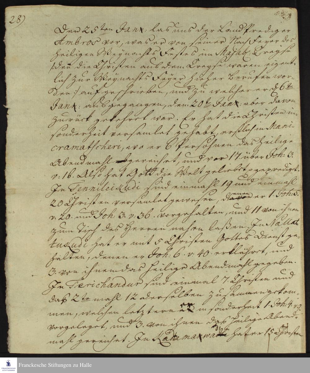 Tagebuch von Johann Christian Wiedebrock, Johann Balthasar Kohlhoff, Daniel Zeglin, Oluf Maderup, Jacob Klein, Christian Friedrich Schwartz und Peter Dame.