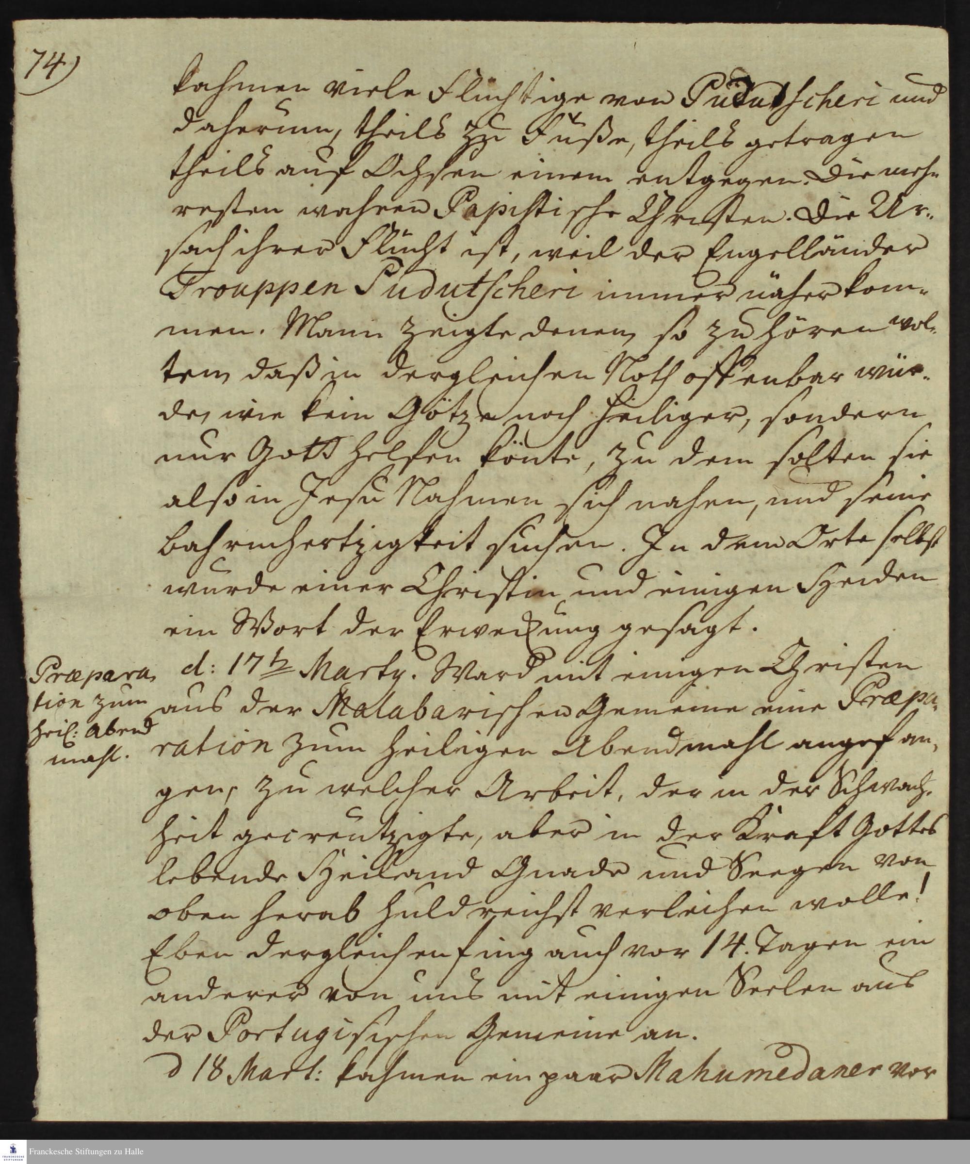 Tagebuch von Johann Christian Wiedebrock, Johann Balthasar Kohlhoff, Daniel Zeglin, Oluf Maderup, Jacob Klein, Christian Friedrich Schwartz und Peter Dame.