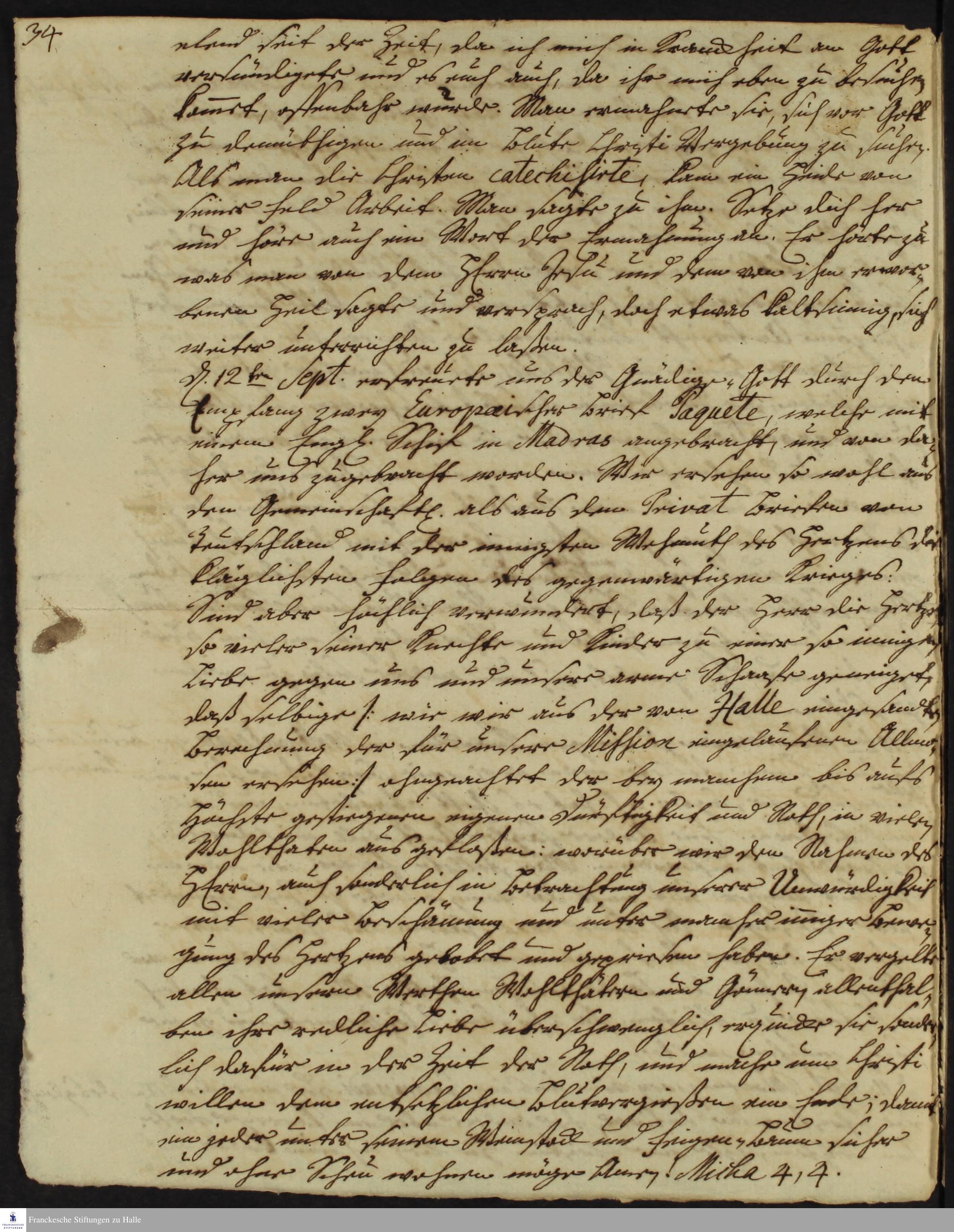 Tagebuch von Johann Christian Wiedebrock, Johann Balthasar Kohlhoff, Daniel Zeglin, Oluf Maderup, Jacob Klein, Christian Friedrich Schwartz und Peter Dame.
