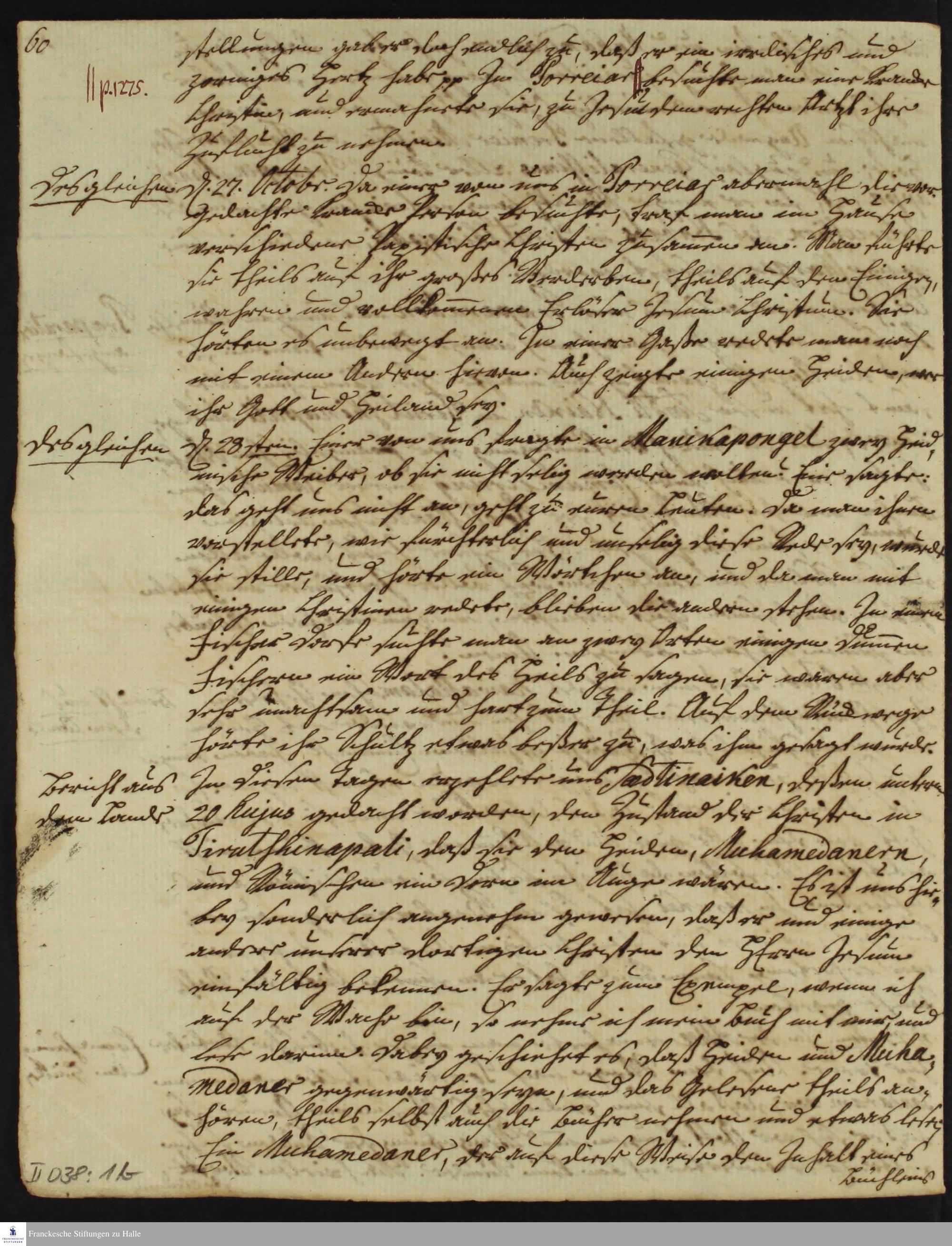 Tagebuch von Johann Christian Wiedebrock, Johann Balthasar Kohlhoff, Daniel Zeglin, Oluf Maderup, Jacob Klein, Christian Friedrich Schwartz und Peter Dame.