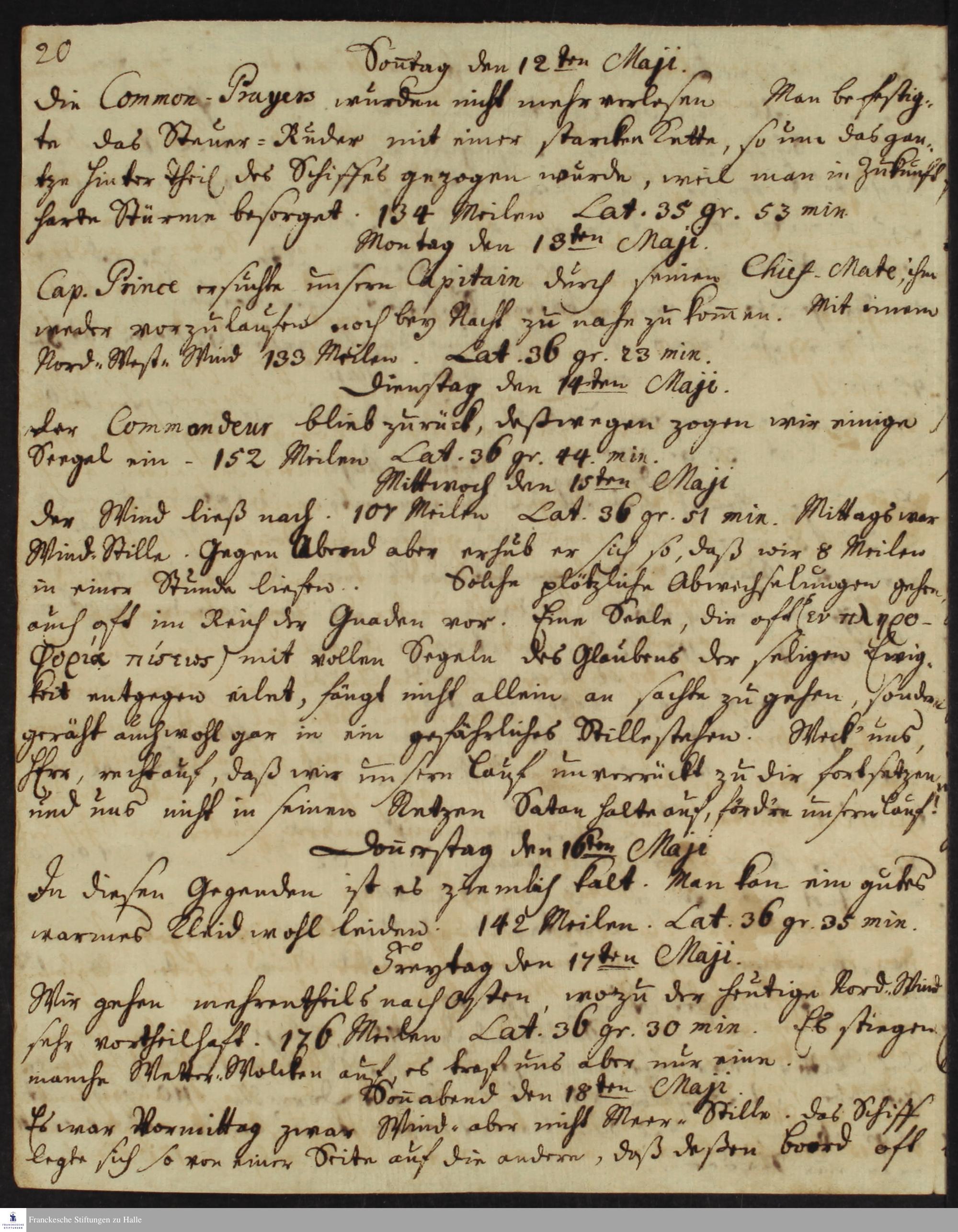 Reisetagebuch von Gottfried Wilhelm Obuch, Johann Christian Wiedebrock und Johann Balthasar Kohlhoff.