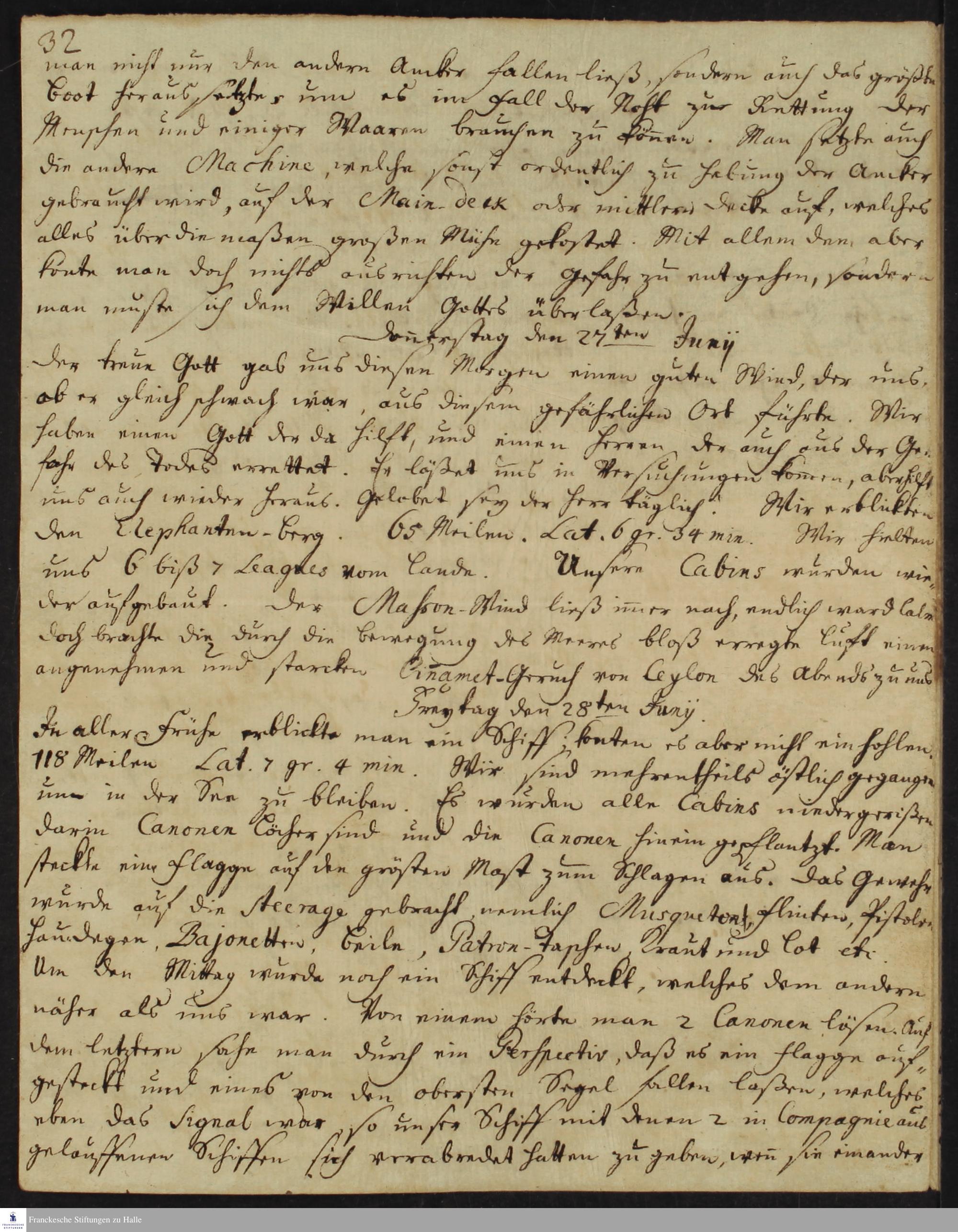 Reisetagebuch von Gottfried Wilhelm Obuch, Johann Christian Wiedebrock und Johann Balthasar Kohlhoff.