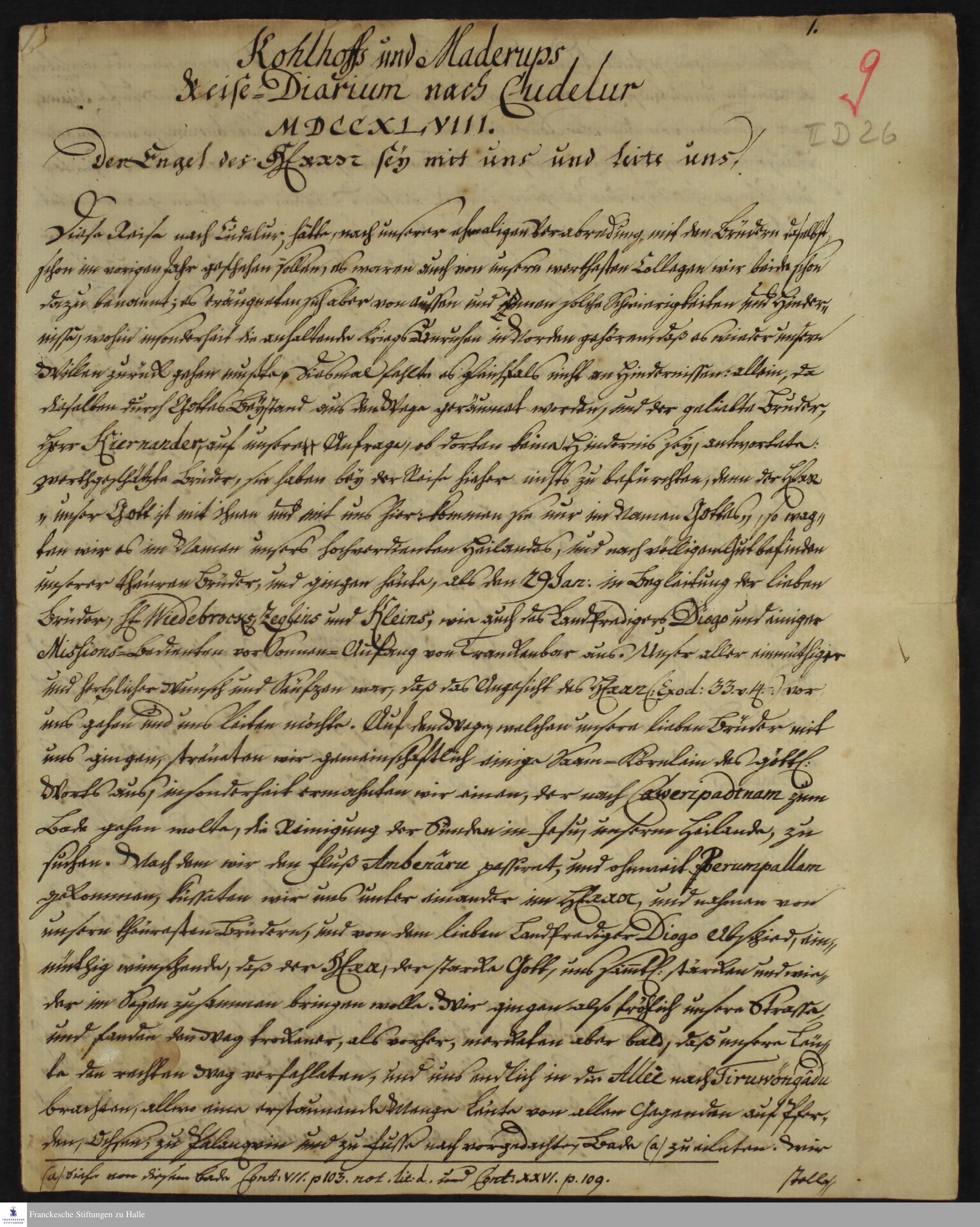 Reisetagebuch von Johann Balthasar Kohlhoff und Oluf Maderup.