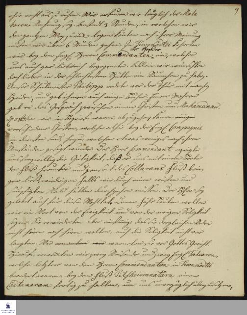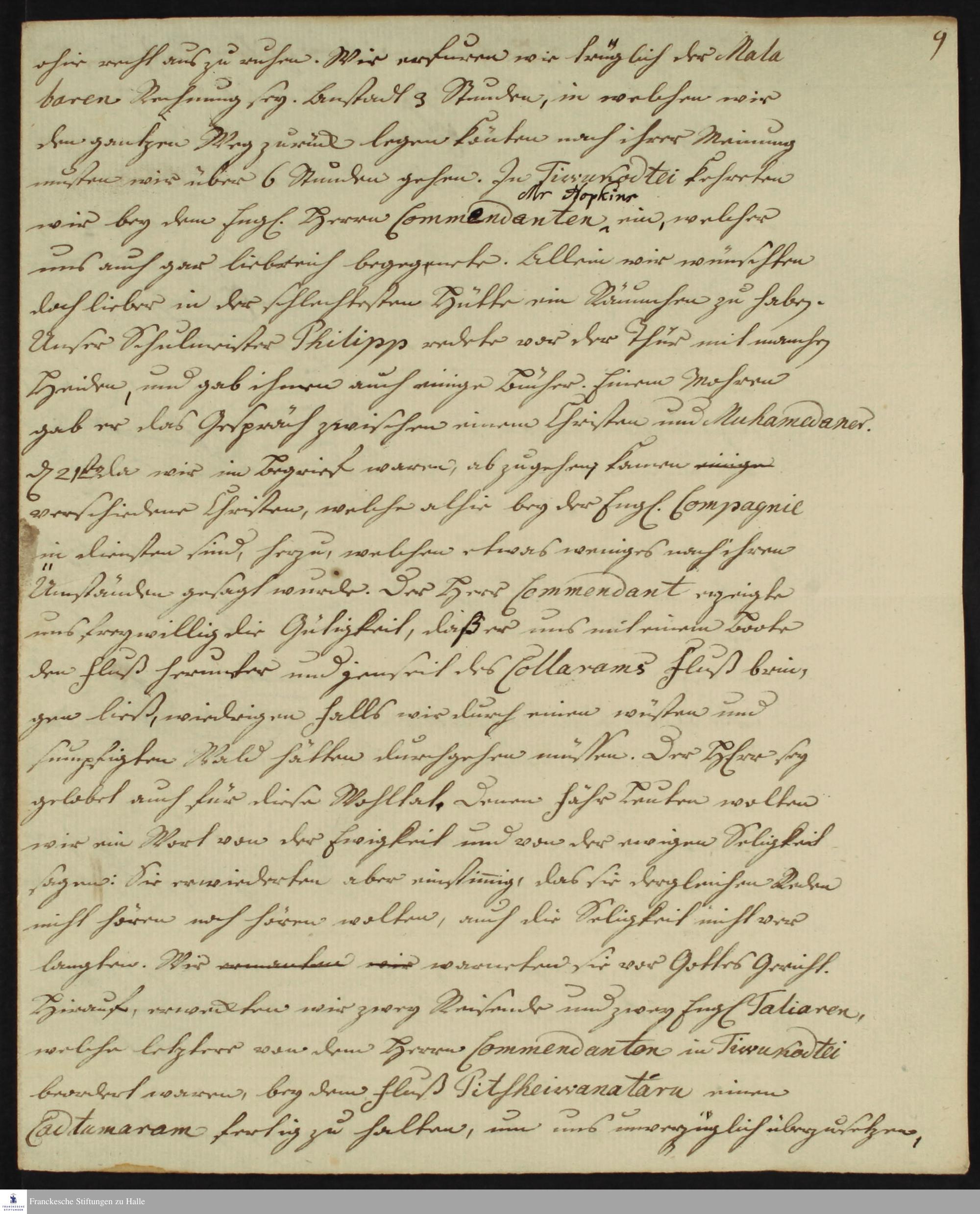 Reisetagebuch von Johann Balthasar Kohlhoff an Christian Friedrich Schwartz.