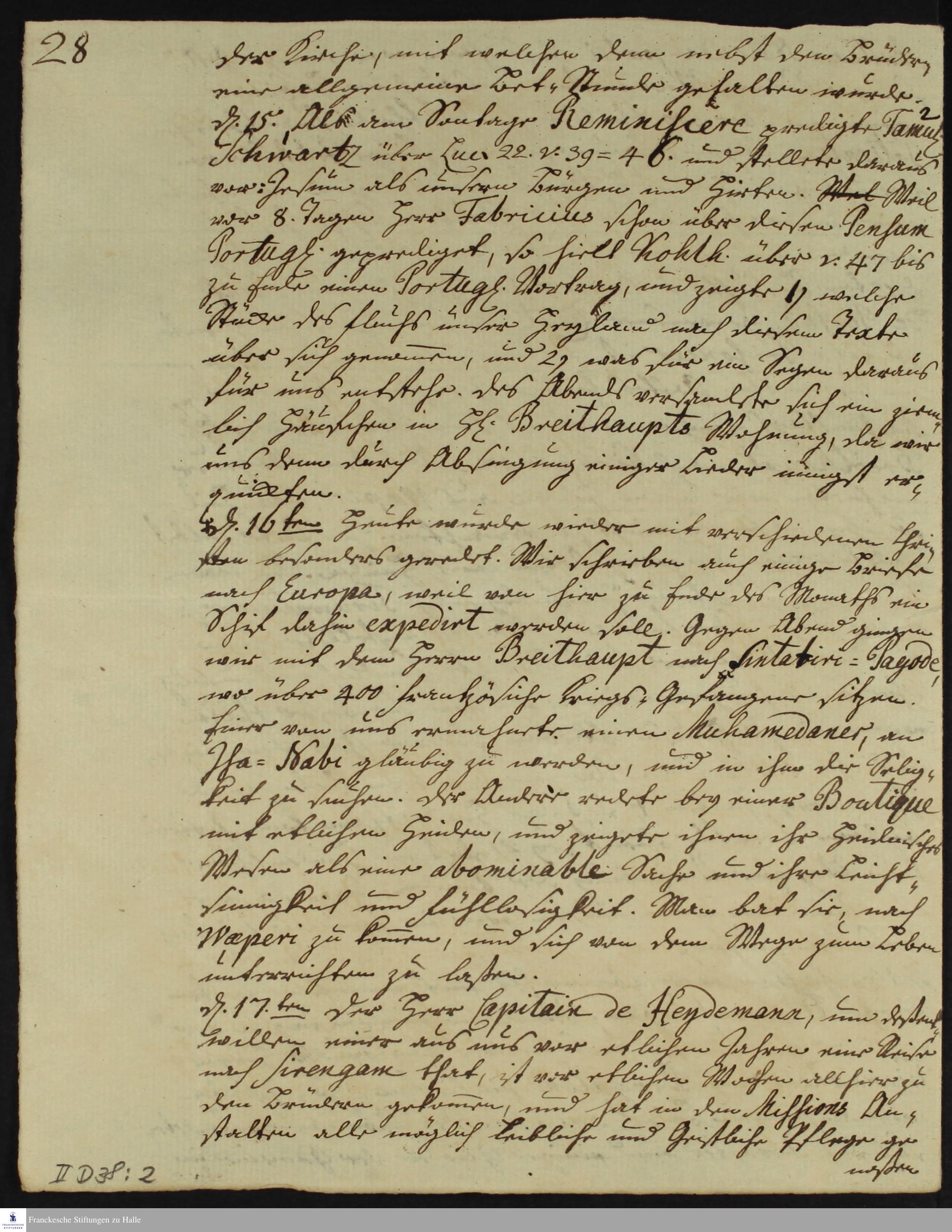 Reisetagebuch von Johann Balthasar Kohlhoff und Christian Friedrich Schwartz.