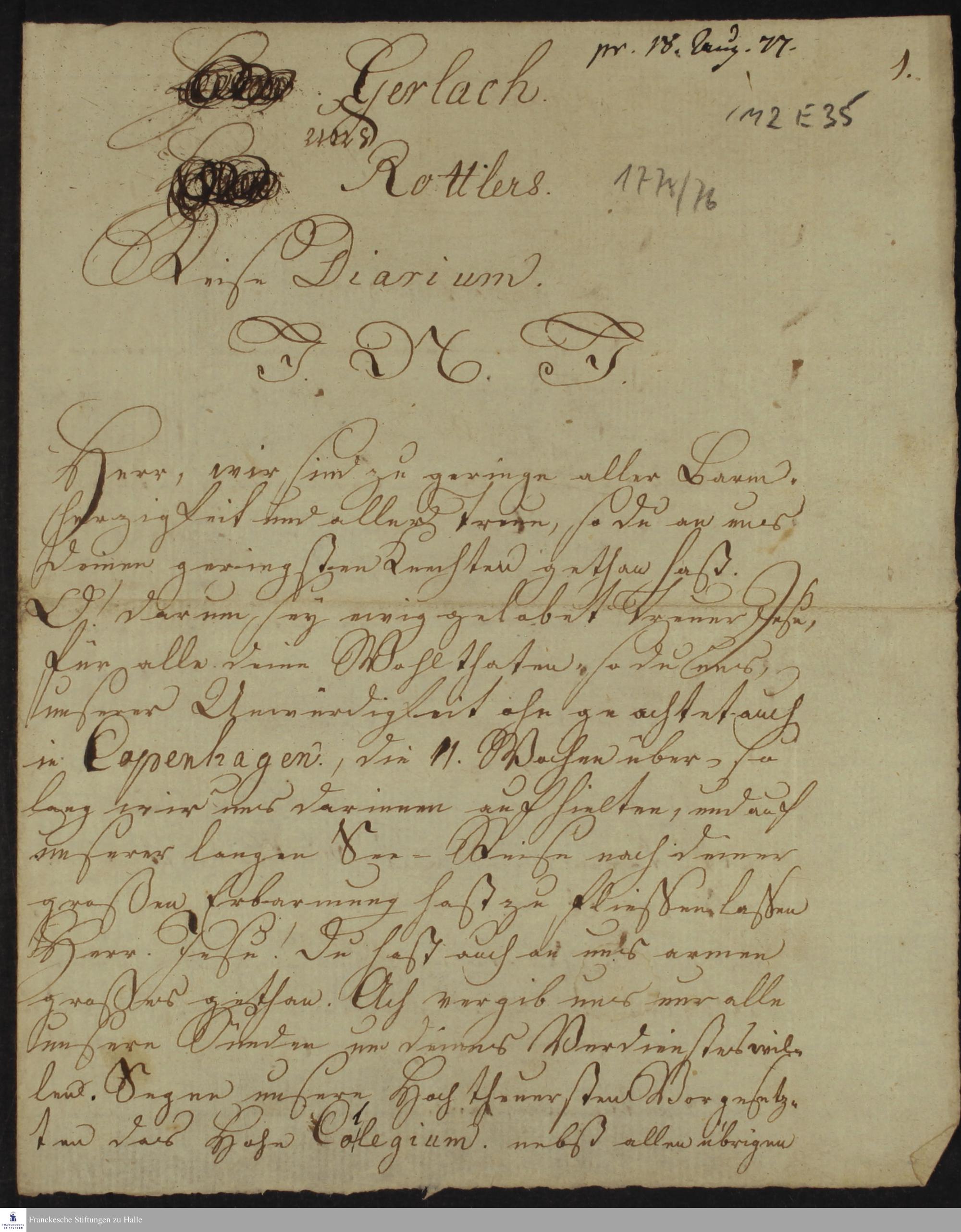 Reisetagebuch von Johann Wilhelm Gerlach und Johann Peter Rottler.