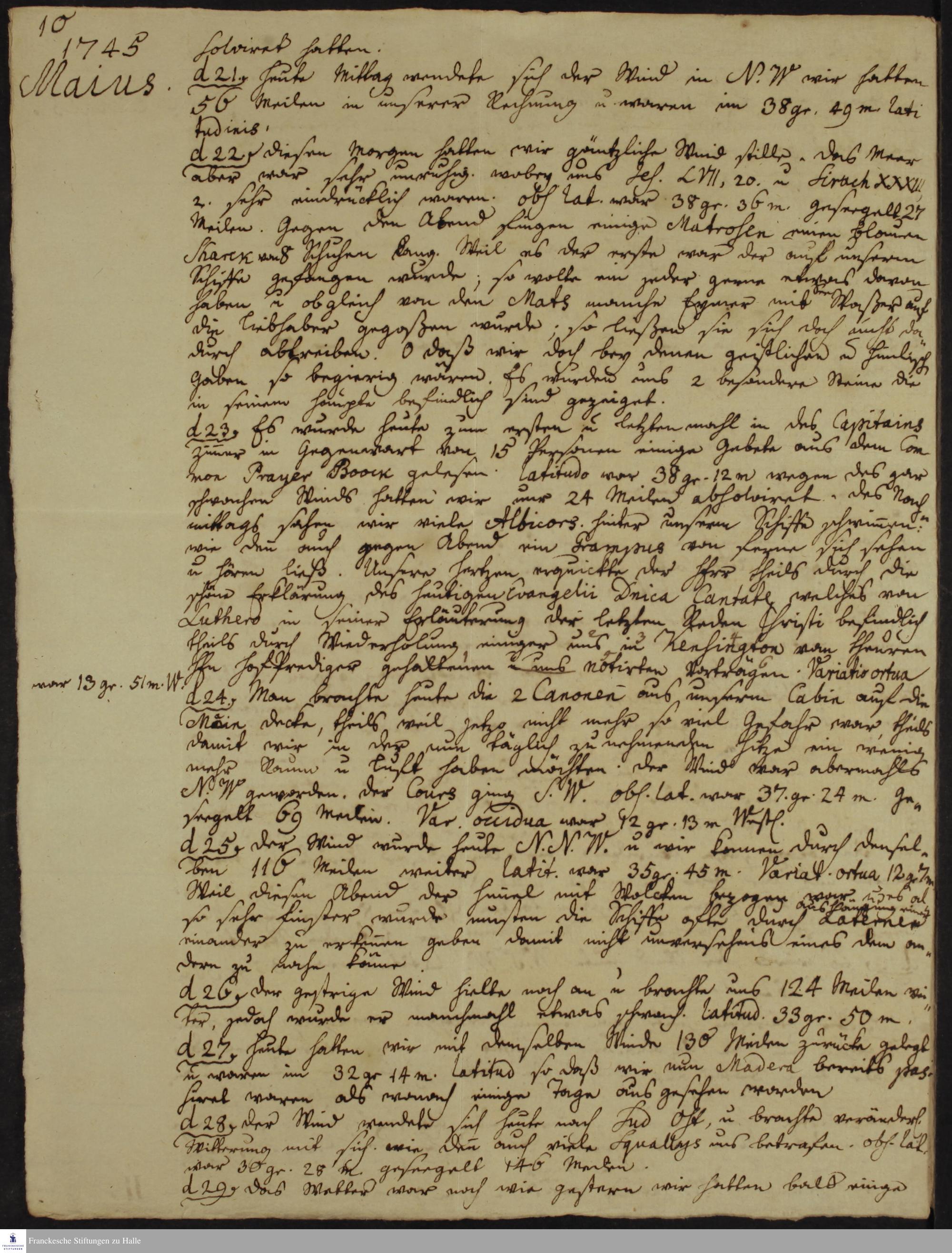 Reisetagebuch von Jacob Klein und Johann Christian Breithaupt.