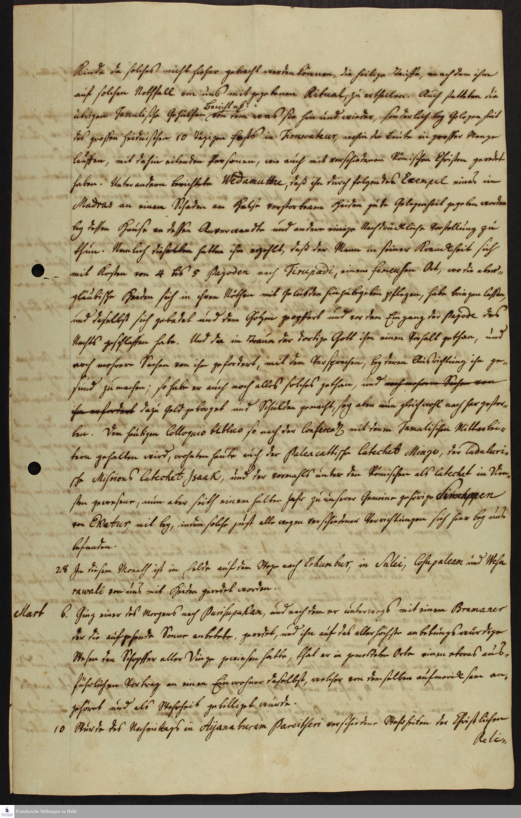 Tagebuch von Johann Philipp Fabricius und Johann Christian Breithaupt.