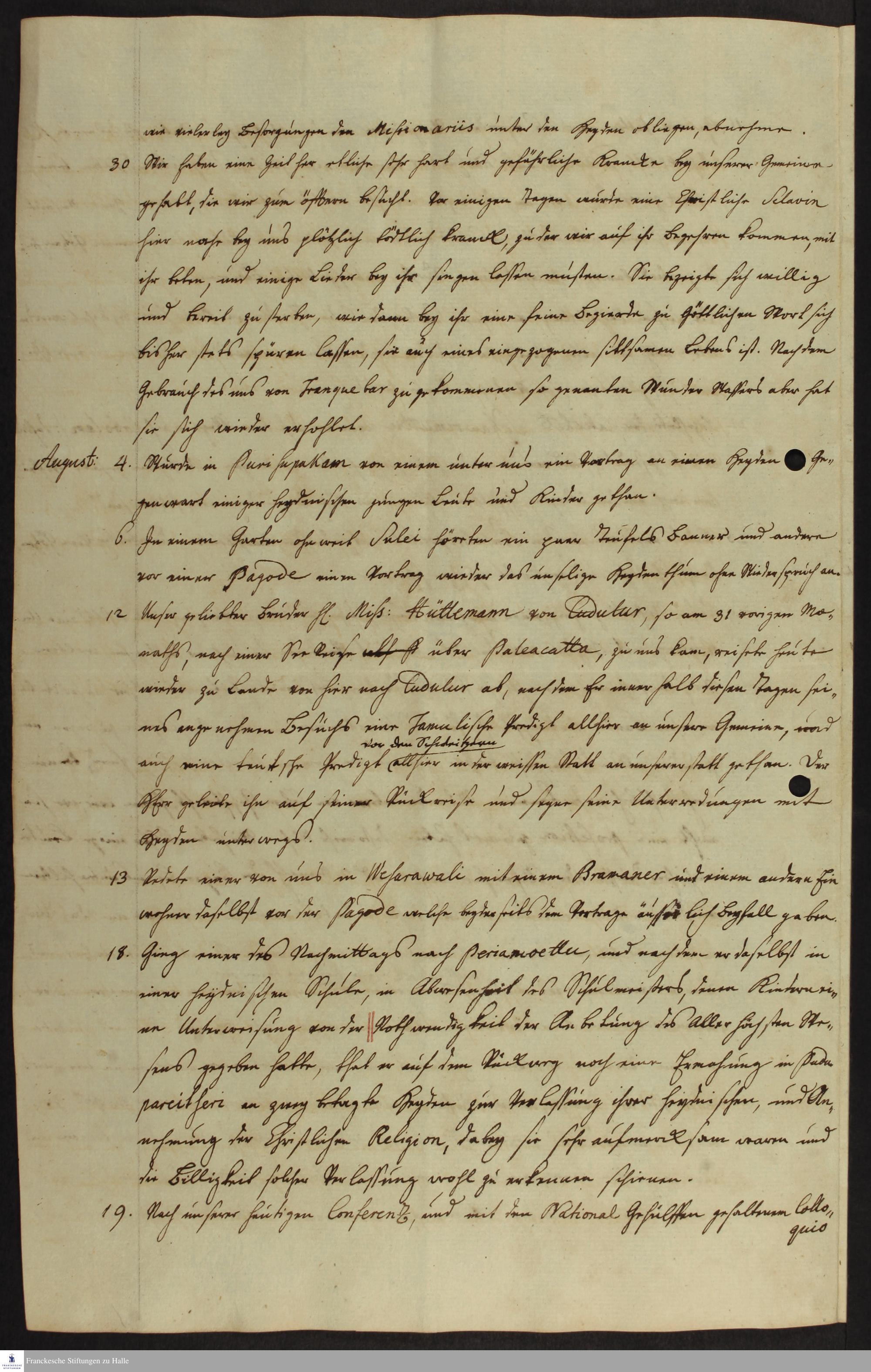 Tagebuch von Johann Philipp Fabricius und Johann Christian Breithaupt.