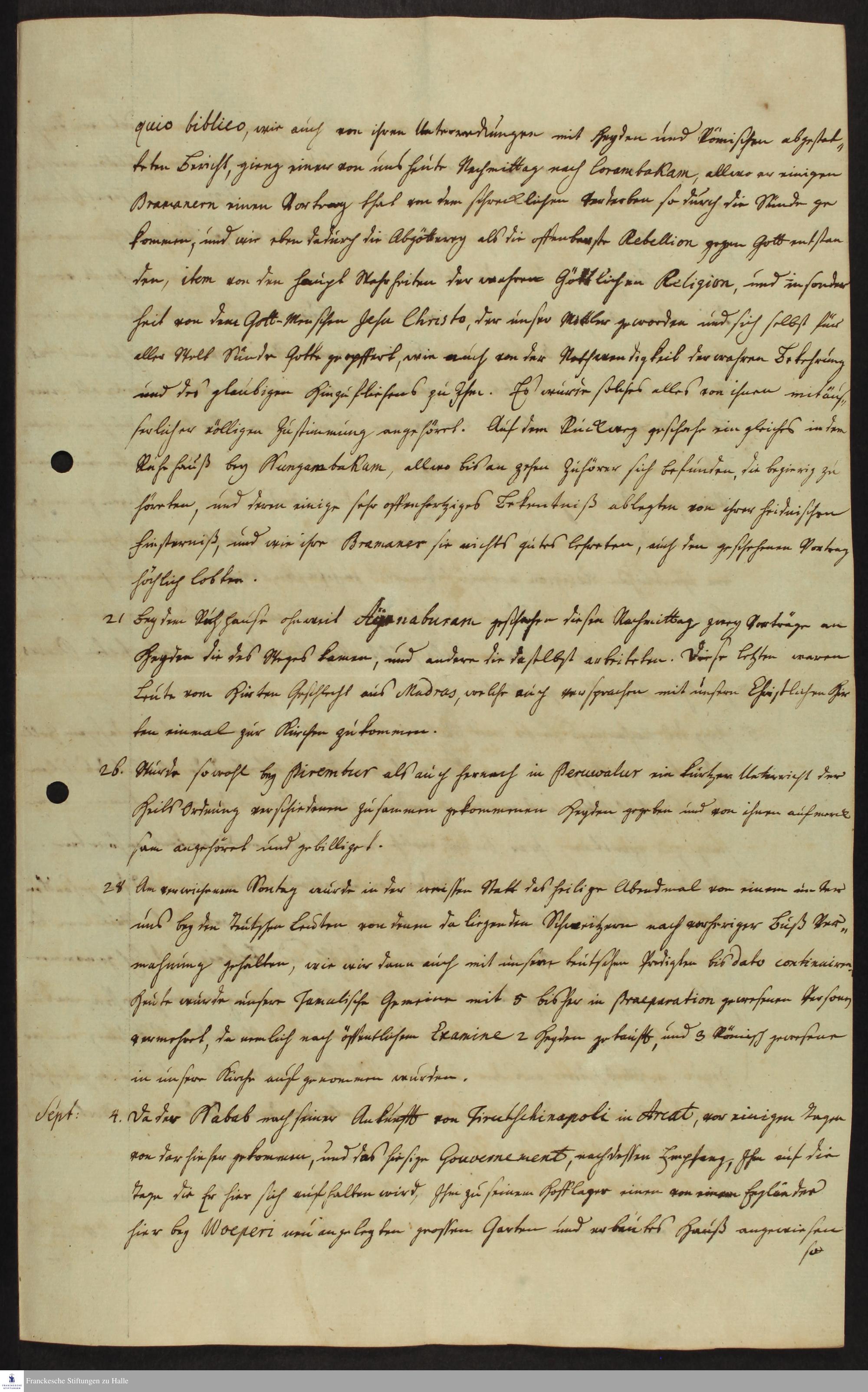 Tagebuch von Johann Philipp Fabricius und Johann Christian Breithaupt.