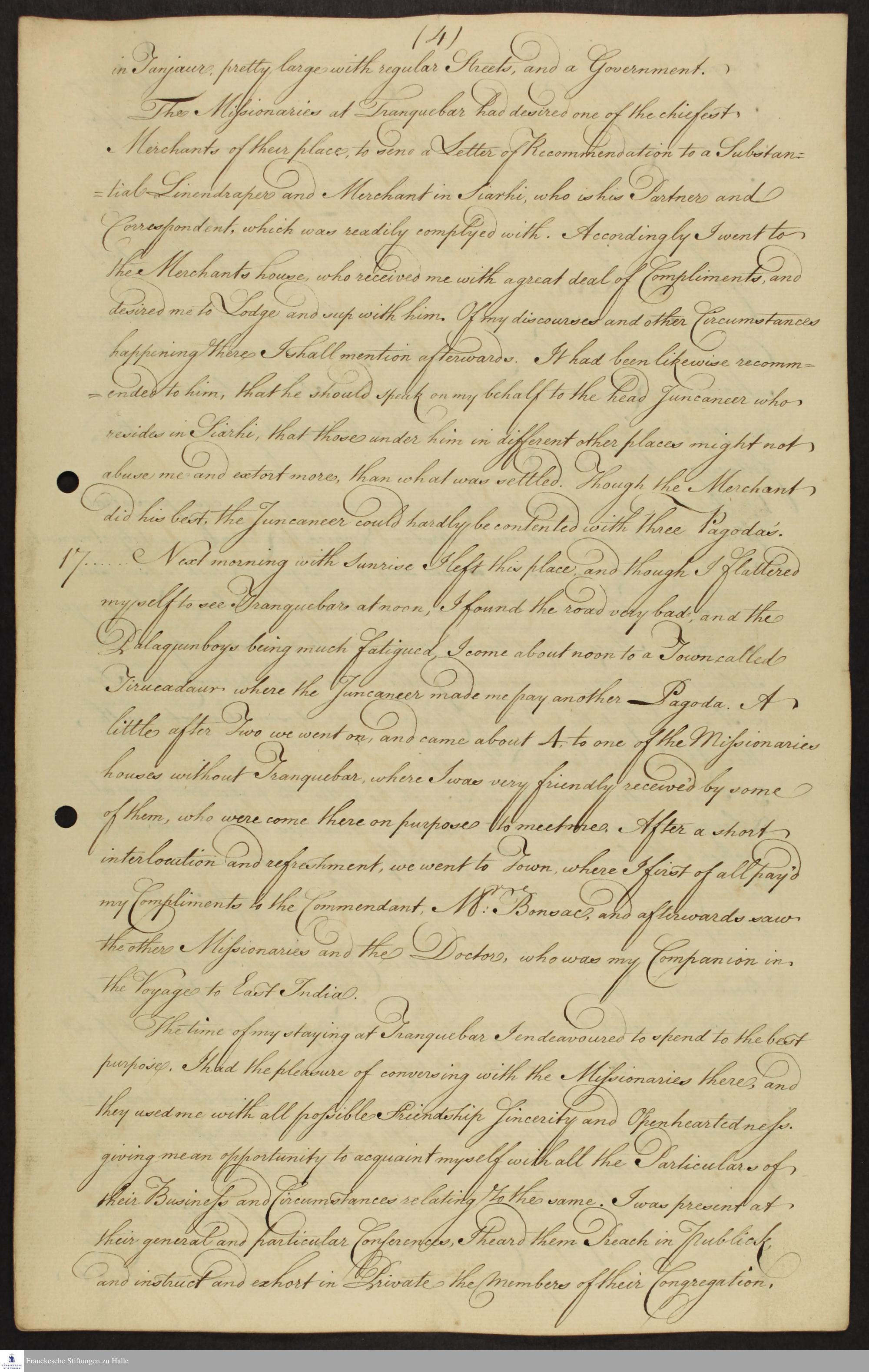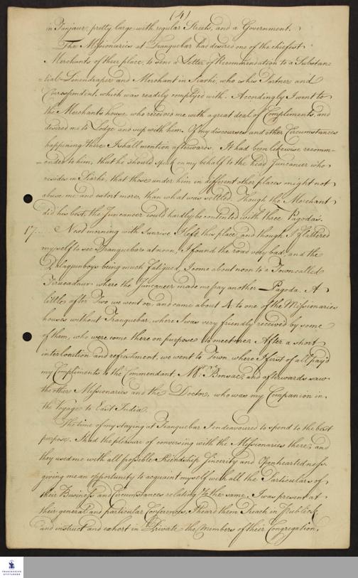 Tagebuch von Johann Ernst Geister und Johann Zacharias Kiernander.