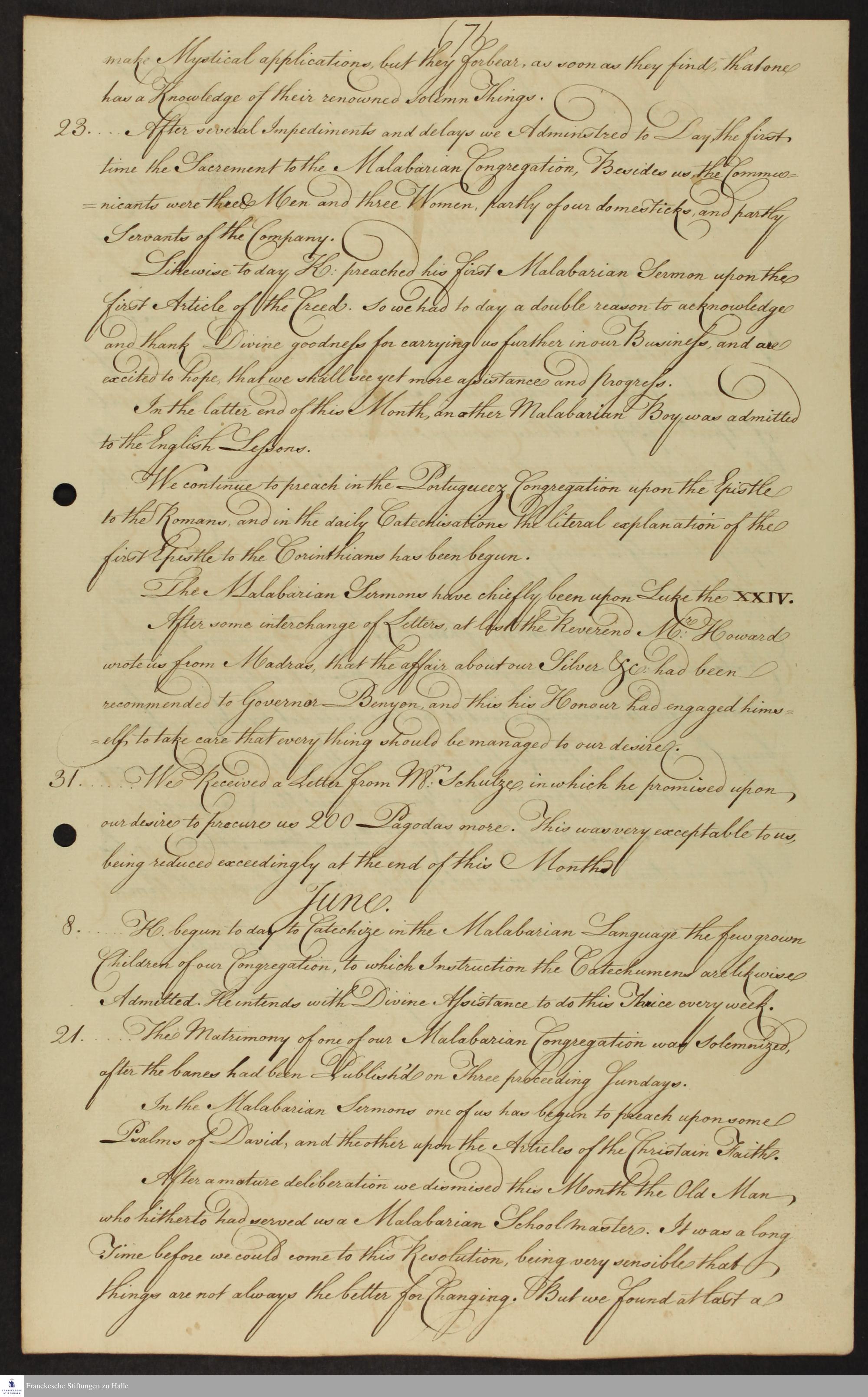 Tagebuch von Johann Ernst Geister und Johann Zacharias Kiernander.