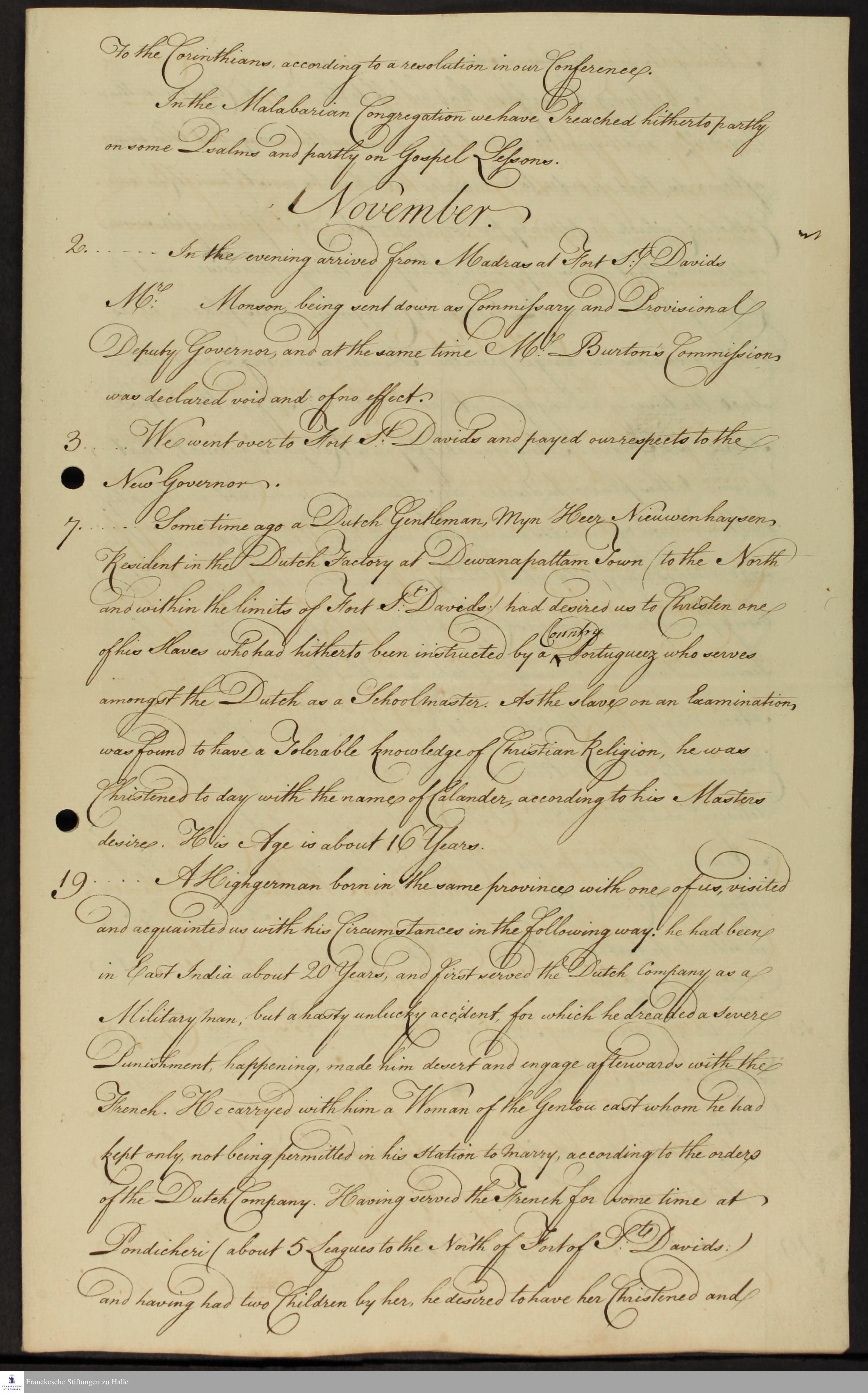 Tagebuch von Johann Ernst Geister und Johann Zacharias Kiernander.