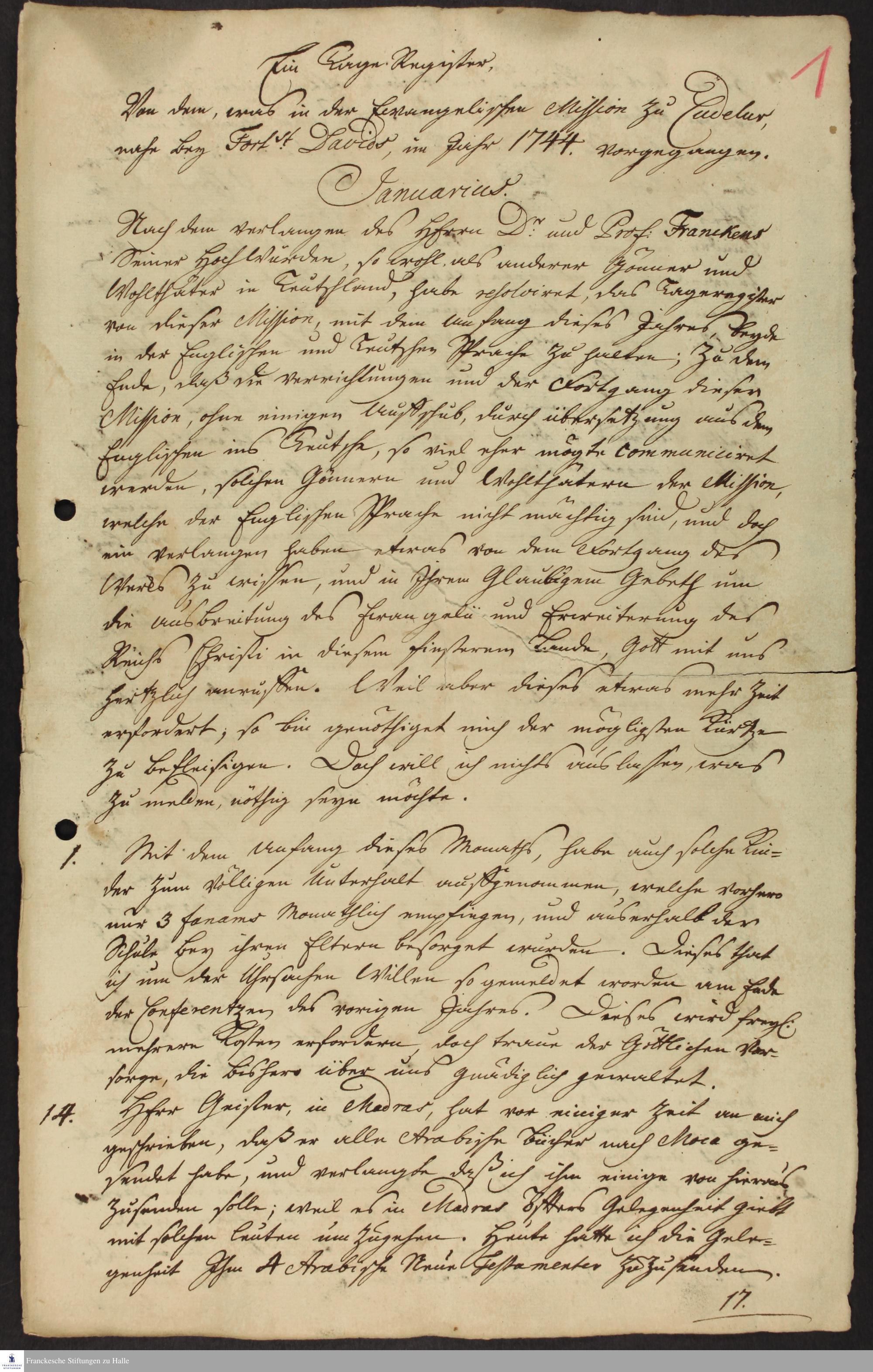 1. - 14. Januar 1744