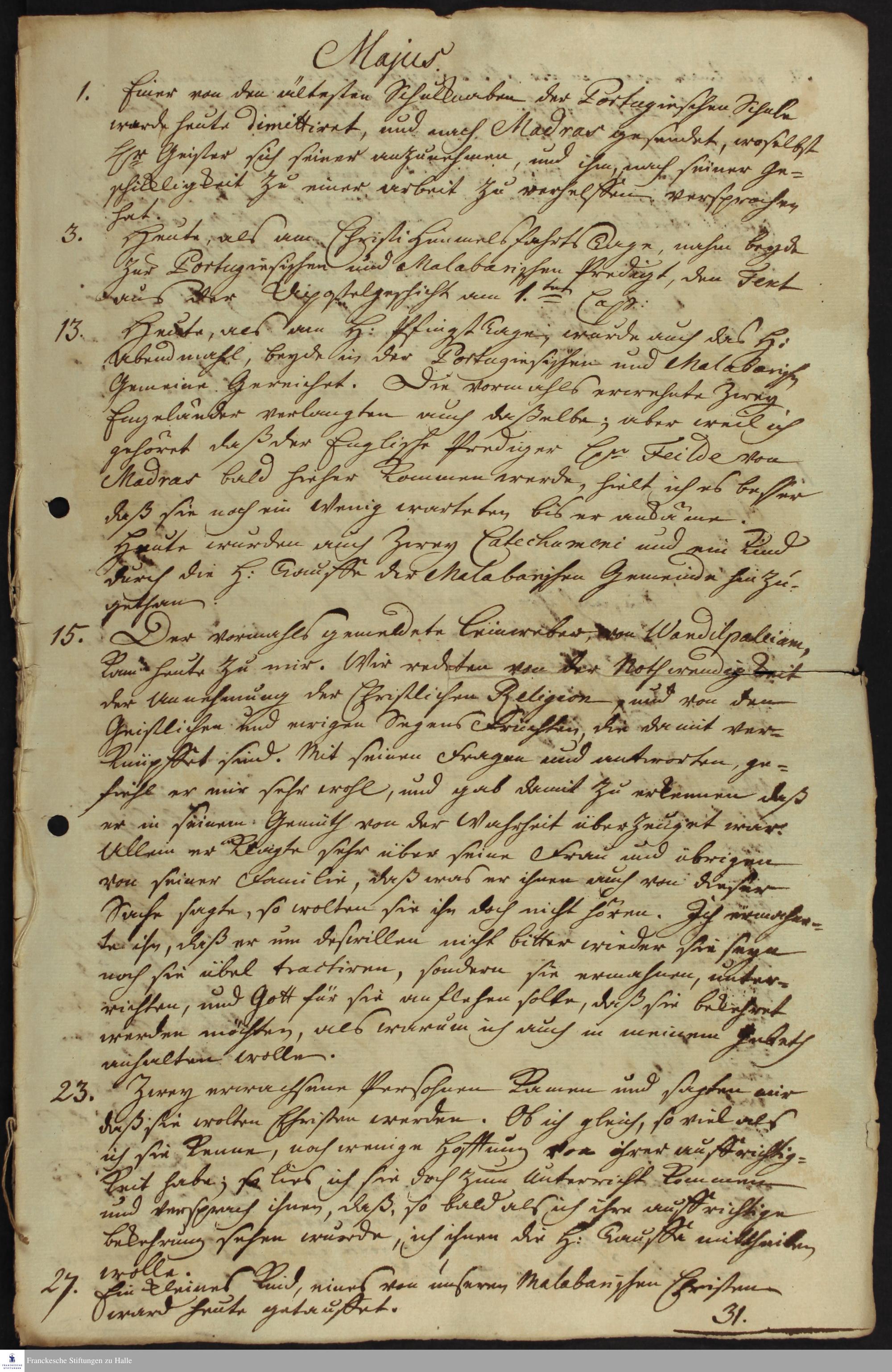 Tagebuch von Johann Zacharias Kiernander.