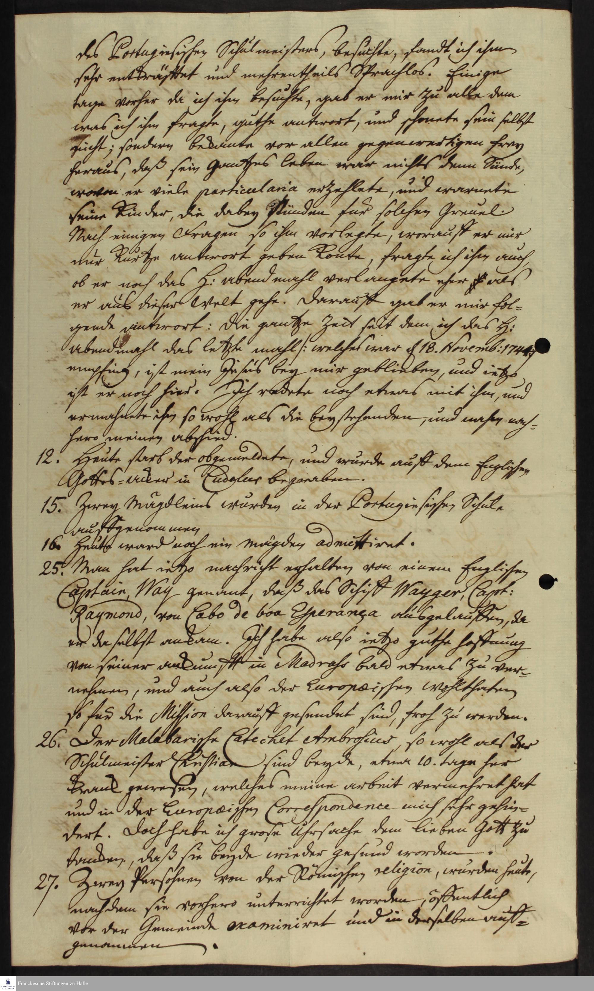 Tagebuch von Johann Zacharias Kiernander.