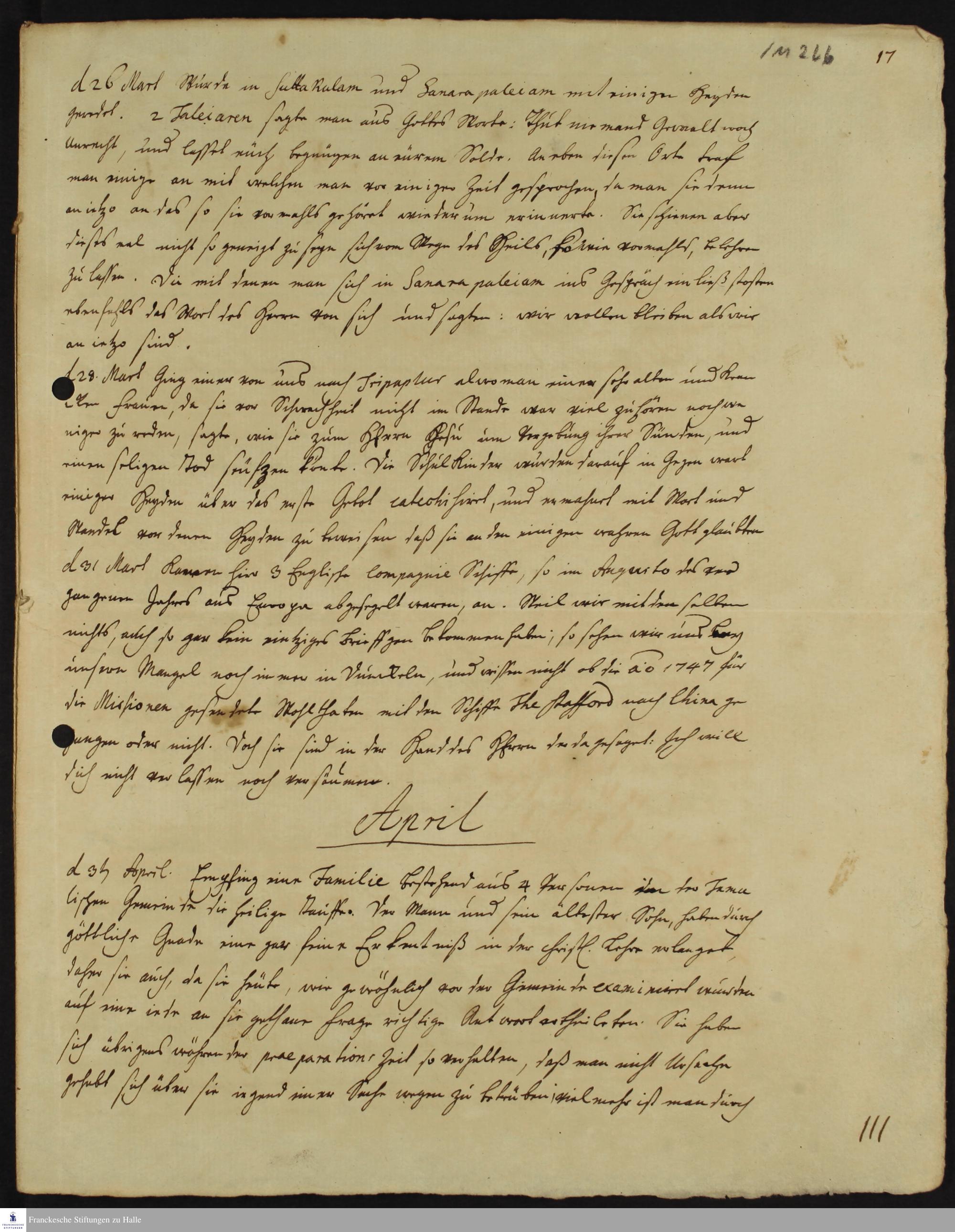 Tagebuch von Johann Zacharias Kiernander und Johann Christian Breithaupt.