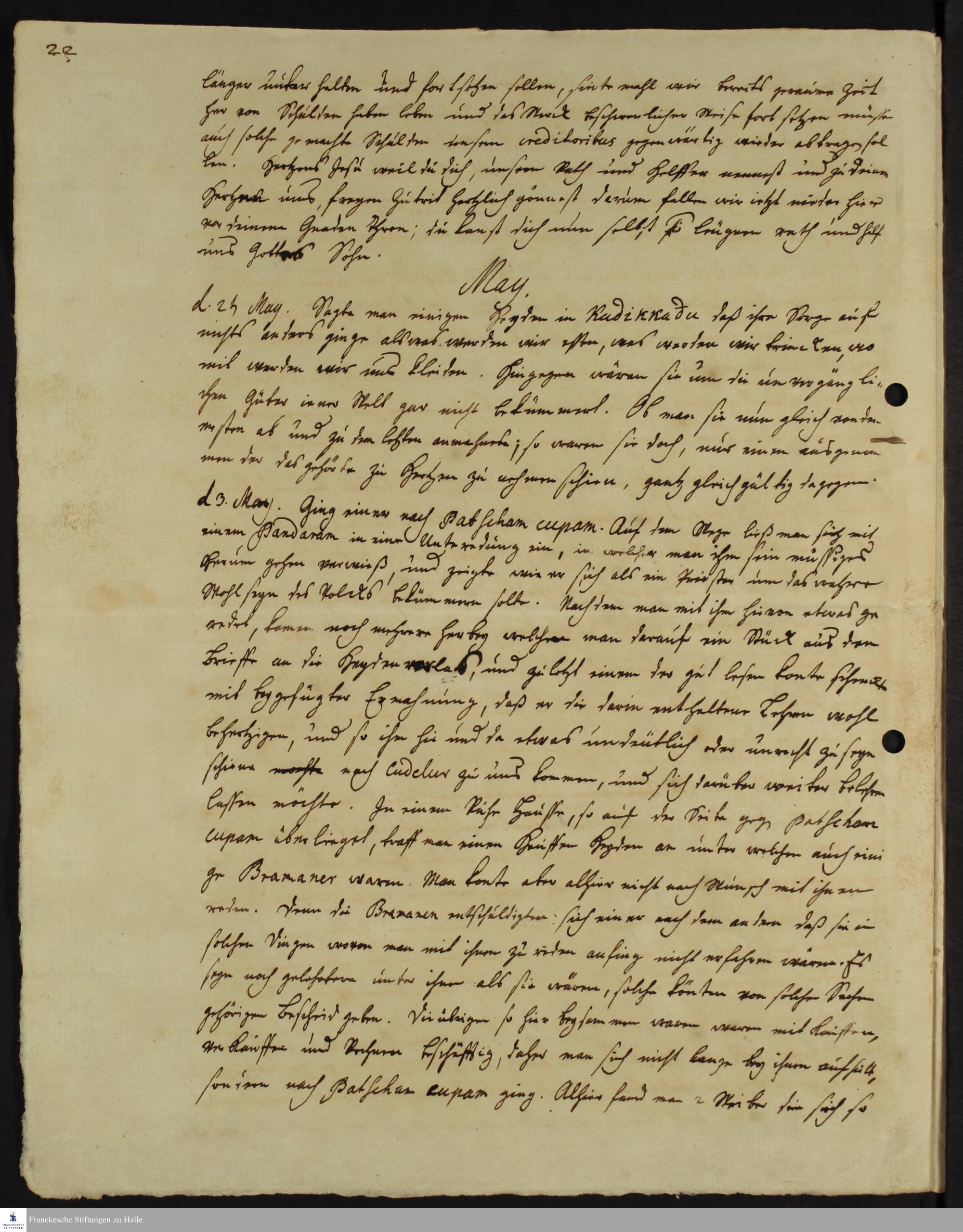 Tagebuch von Johann Zacharias Kiernander und Johann Christian Breithaupt.