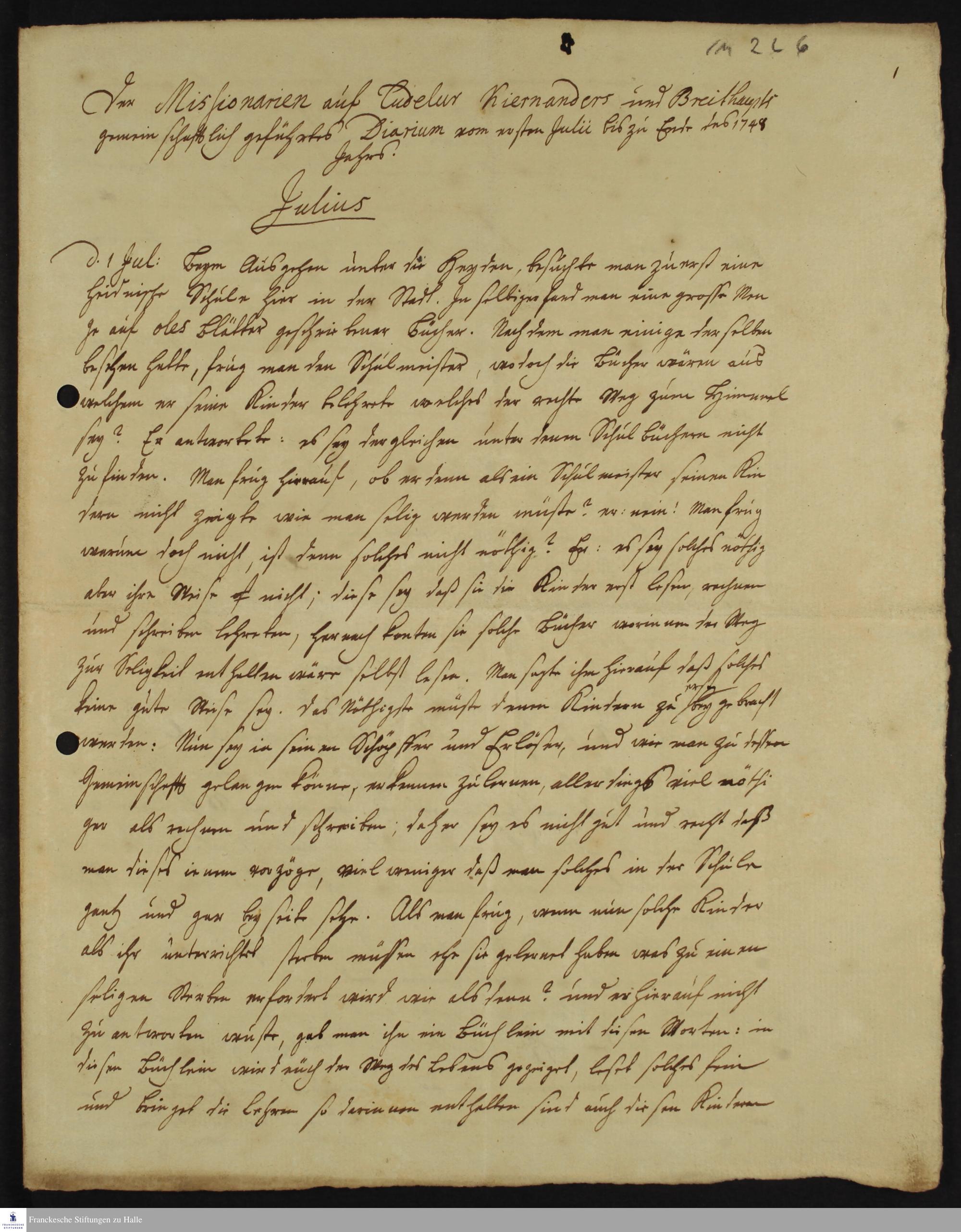Tagebuch von Johann Zacharias Kiernander und Johann Christian Breithaupt.